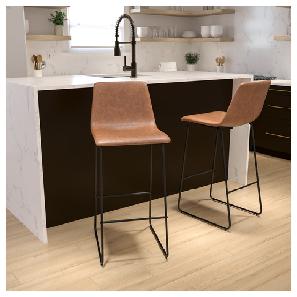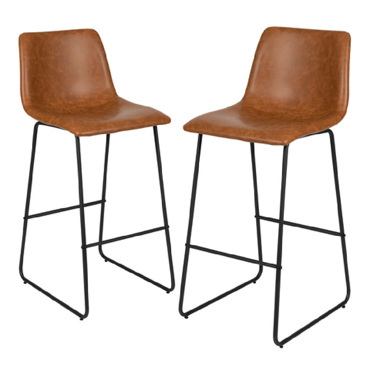 The Flash Furniture 2-ET-ER18345-30-LB-GG Bar Stool is designed to seamlessly blend style and durability, making it a reliable choice for various market segments, including homes, restaurants, and bars. With a substantial weight capacity of 300 lb., this bar stool is crafted to accommodate a range of users comfortably. Measuring 18"W x 22"D x 42"H, it fits perfectly as a bar-height seating option, providing the ideal elevation for standard bar counters and high tables. The stool features a LeatherSoft seat and back, offering a soft, yet resilient surface that combines both leather and polyurethane for added softness and longevity. The light brown color adds a touch of warmth and elegance to any décor setting. This product is sold as a set of two, making it a convenient and cost-effective solution for outfitting multiple seating areas. The Flash Furniture Bar Stool is not only aesthetically pleasing but also engineered to withstand regular use in high-traffic environments, thereby representing a versatile and practical seating solution for diverse settings.