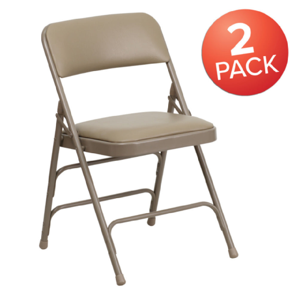 The Flash Furniture 2-HA-MC309AV-BGE-GG Hercules Series Folding Chair is distinguished by its robust construction and versatile design, making it an ideal solution for various market segments requiring reliable seating solutions. This folding chair is engineered with a superior weight capacity of 300 lb., ensuring durability and stability for a broad range of users. It features a vinyl upholstered seat and back, paired with a 1" CA117 fire retardant foam seat, offering both comfort and safety. The chair's structure is reinforced with a curved triple braced frame and double hinged, riveted steel components, contributing to its resilience and longevity. Constructed from 18 gauge steel, the chair boasts a powder coat frame finish that enhances its durability while maintaining an appealing aesthetic. Designed for both indoor and outdoor commercial use, the chair is equipped with non-marring glides to protect flooring surfaces. Available in an elegant beige color, the set of two chairs typically ships within 24 hours for in-stock items, demonstrating efficient logistics and customer service. This folding chair is a practical choice for event planners, hospitality venues, and educational institutions seeking dependable seating solutions with a focus on safety and convenience.
