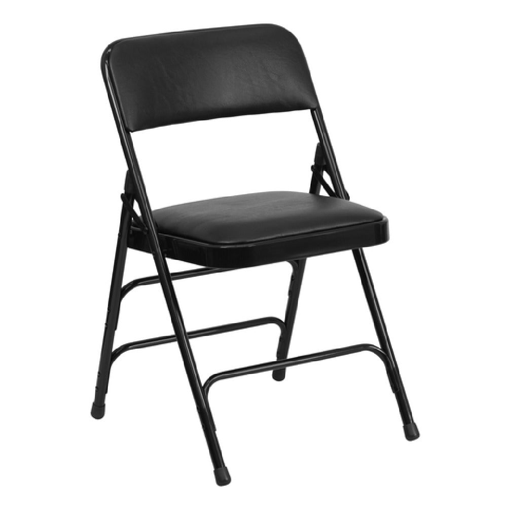The Flash Furniture 2-HA-MC309AV-BK-GG Hercules Series Folding Chair is engineered to support a weight capacity of 300 lbs, making it an excellent choice for a variety of commercial settings. This high-performance chair features a vinyl upholstered seat and back, providing both comfort and durability. The 1" CA117 fire retardant foam seat enhances safety, while the curved triple braced frame offers added stability. Designed with double hinges and riveted steel components, this chair ensures long-lasting usage. Crafted with an 18-gauge steel frame, it boasts a powder coat finish that resists wear and tear. The non-marring glides protect floors from scratches, making it suitable for indoor and outdoor use. This chair is available in a sleek black color and comes as a set of two, providing practical seating solutions for events, conferences, or meetings. Whether used in hospitality venues, educational institutions, or corporate environments, the Flash Furniture Hercules Series Folding Chair combines robustness with a stylish design, meeting the demands of various market segments. With in-stock items typically shipping within 24 hours, this chair is a reliable choice for businesses requiring immediate solutions.