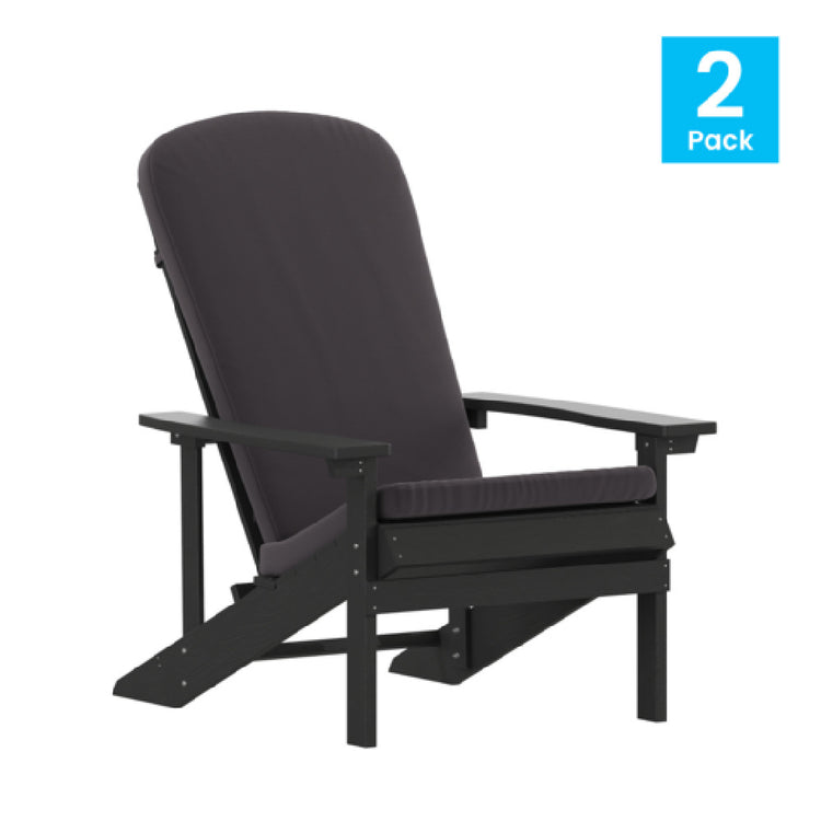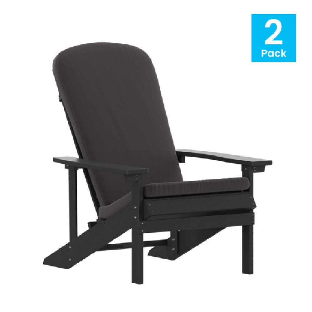 The Flash Furniture 2-JJ-C14501-CSNGY-SLT-GG Charlestown Adirondack Chair is a versatile seating solution designed for durability and comfort in various outdoor settings. Crafted from all-weather poly resin wood, this chair is built to withstand the elements, making it an excellent choice for patios, gardens, and other outdoor spaces. The slate gray finish, complemented by gray cushions, provides a contemporary look while ensuring comfort. Sold as a set of two, these chairs are perfect for both residential and commercial use, offering a stylish yet resilient seating option for environments ranging from private backyards to public hospitality venues. The poly resin construction mimics the appearance of traditional wood without the maintenance concerns, offering a long-lasting, fade-resistant solution that retains its aesthetic appeal over time. Whether for personal relaxation or accommodating guests, the Flash Furniture Charlestown Adirondack Chair combines practicality with a modern design, catering to different market segments seeking reliable and attractive outdoor furniture.