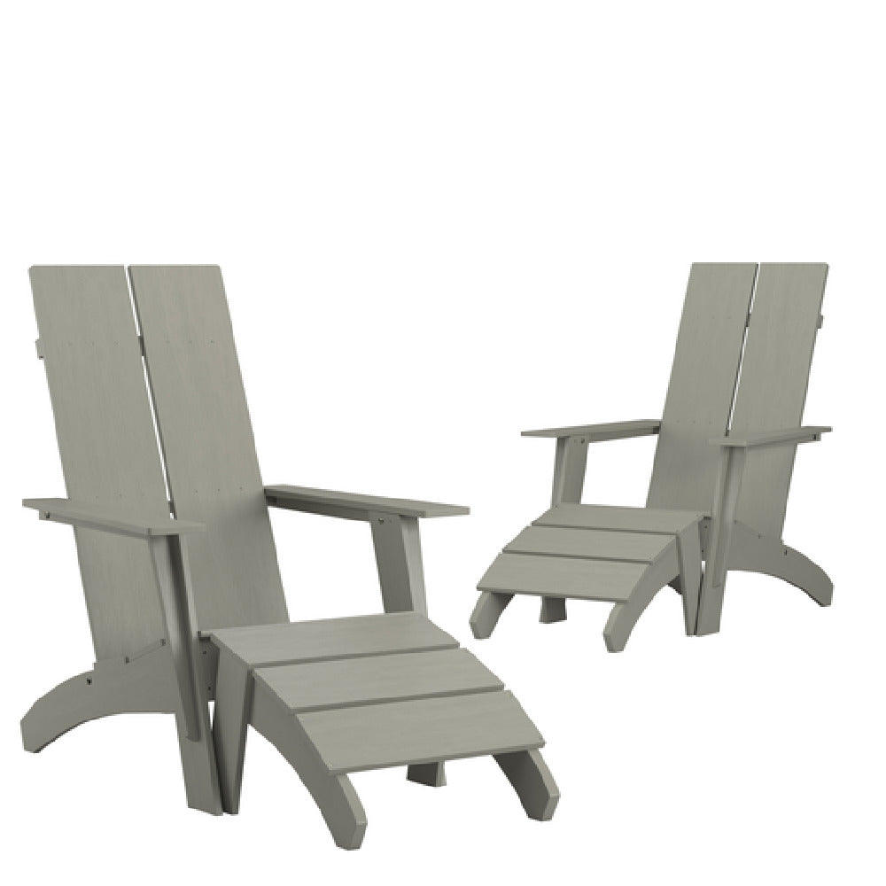 Flash Furniture 2-JJ-C14509-14309-GY-GG Sawyer Modern Adirondack Chair With Foot Rest - 1/Set