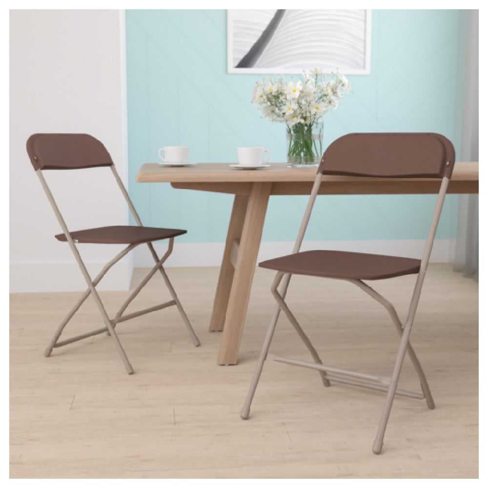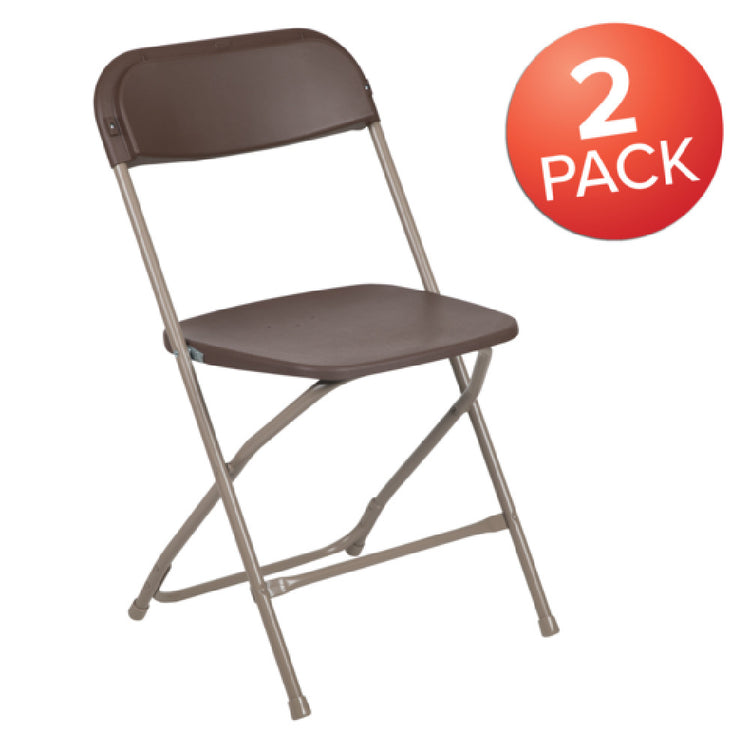The Flash Furniture 2-LE-L-3-BROWN-GG Hercules Series Premium Folding Chair is engineered to accommodate a remarkable 650 lb. weight capacity, making it an optimal choice for a variety of settings, from large-scale events to personal gatherings. The chair's lightweight design features a plastic contoured back and seat, providing ergonomic support and comfort. The textured seat is equipped with drain holes, ensuring quick drying and practicality in both indoor and outdoor environments. Built with double support rails and an 18-gauge steel frame, this chair combines durability with strength. Its brown powder-coated frame finish adds a layer of protection against wear and tear, while non-marring floor caps prevent damage to flooring surfaces. The space-saving nesting design facilitates easy storage and transportation. Ideal for commercial use, this set of two chairs is available for quick shipment, typically within 24 hours for in-stock items. Whether for corporate events, hospitality venues, or home use, the Flash Furniture Hercules Series Folding Chair delivers on reliability and style, tailored to meet the needs of diverse markets within the seating industry.