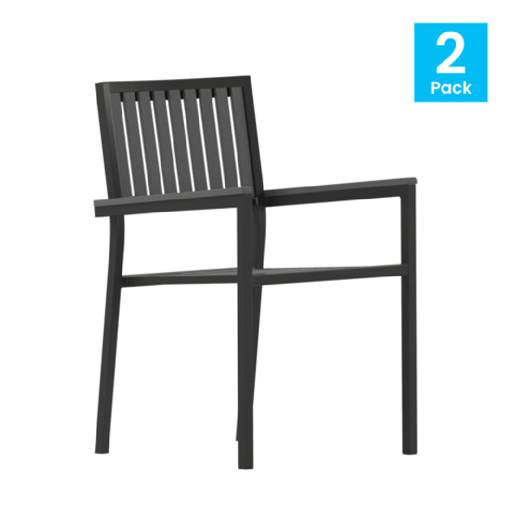 The Flash Furniture 2-SB-A268C-BK-GG Harris Stack Club Chair is a versatile seating solution with a substantial 400 lb. weight capacity, catering to both durability and comfort. This chair features a poly resin slatted back and seat, ensuring resilience and easy maintenance, ideal for diverse environments. The black e-coated steel frame provides robust support, complemented by fixed floor glides for stability on various surfaces. Designed for convenience, the chair can stack up to 8 chairs high, optimizing storage and transport efficiency. Its suitability for both indoor and outdoor use makes it an adaptable choice for different settings, including commercial venues and residential spaces. Available in a classic black finish, this set of two chairs requires no assembly, offering immediate utility upon delivery. These specific features make the Flash Furniture Harris Stack Club Chair a practical option across multiple market segments, from hospitality to educational institutions, where durability, ease of use, and efficient space management are top priorities.