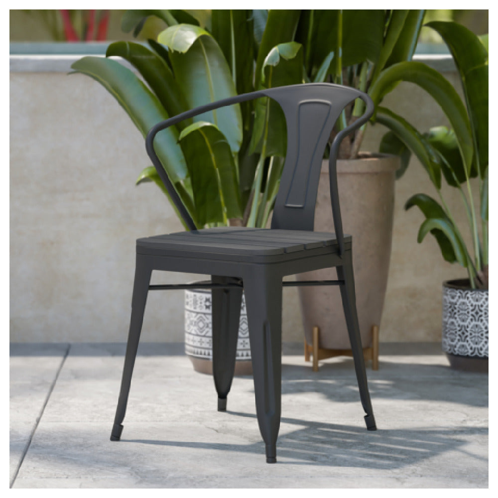 The Flash Furniture 2-SB-T11C-BK-GG Helvey Stacking Airchair is a versatile seating solution with a 400 lb. weight capacity, designed to meet the demands of both indoor and outdoor commercial environments. This chair features a vertical slatted back and a poly resin seat, ensuring comfort and durability. The robust black e-coated steel frame is complemented by underseat bracing, enhancing stability and longevity. With fixed floor glides, the chair ensures minimal floor damage and ease of movement. It is designed to stack up to eight chairs high, optimizing storage space and making it ideal for venues that require quick and efficient setup and teardown. Delivered in a practical set of two, this chair requires no assembly, providing immediate usability. Its sleek black finish and functional design cater to a range of market segments, including hospitality, events, and commercial spaces, where reliable and elegant seating is essential. Whether used in a bustling restaurant or a tranquil outdoor patio, the Flash Furniture Helvey Stacking Airchair stands out as a practical and stylish choice.