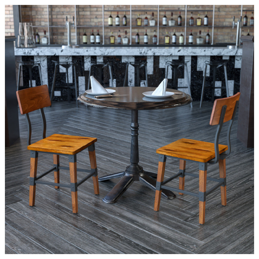 Flash Furniture 2-XU-DG-W0236-GG Dining Chair is engineered for durability and style, boasting a substantial 500 lb. weight capacity. Its construction features a mortise and tenon design, enhanced with metal wood screw reinforcements, ensuring stability and longevity. The chair includes a support bar, adding to its robustness. With a rustic walnut finish, the wood back and seat provide a timeless aesthetic, while the beechwood frame contributes to its sturdy build. This dining chair set of 2 is equipped with plastic floor glides, making it suitable for various floor types and preventing scratches. The combination of traditional craftsmanship and modern engineering makes this chair appealing to both residential and commercial markets, such as restaurants and cafes, where both style and functionality are critical. For those in need of quick solutions, in-stock items typically ship within 24 hours, offering a swift option for businesses undergoing renovations or expansions.