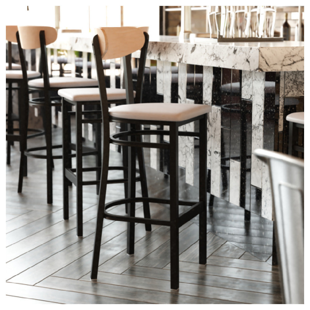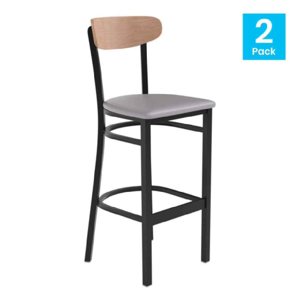 The Flash Furniture 2-XU-DG6V6GYV-NAT-GG Wright Bar Stool is engineered to support a remarkable weight capacity of 500 lb, showcasing its robust construction and suitability for diverse environments. The stool features a gray vinyl upholstered seat, offering a combination of comfort and durability. Its wooden boomerang back provides an elegant design accent while ensuring sturdy support, complemented by a black steel frame that enhances its structural integrity. The lower bracing footrest adds to the overall comfort and stability of the stool, making it a practical choice for high-traffic areas. Fixed floor glides ensure floor protection and ease of movement, minimizing wear and tear on flooring surfaces. The stool set, which includes two units, displays a natural birch finish, adding a touch of sophistication to any setting. Designed for versatility, this bar stool is suitable for both residential and commercial spaces, accommodating a wide range of users and applications. Note that assembly is required, allowing for straightforward installation. Whether in a bustling bar, a trendy café, or a modern kitchen, the Flash Furniture Wright Bar Stool seamlessly blends style with functionality, making it an exceptional choice for enhancing seating arrangements.