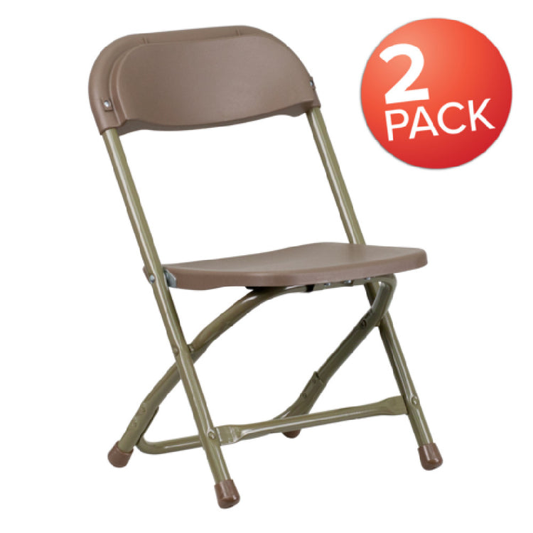 The Flash Furniture 2-Y-KID-BN-GG Timmy Folding Chair is expertly designed to cater to the needs of preschool and kindergarten environments with a remarkable weight capacity of 220 pounds. This chair, when folded, measures 13 inches in width, 2-1/4 inches in depth, and 25 inches in height, offering a compact storage solution for educational facilities. A key feature includes its plastic back and seat, which are not only durable but also equipped with a textured surface to enhance comfort and reduce slipping. The frame is constructed from gold powder-coated steel, ensuring both strength and an appealing aesthetic. Additionally, the chair is fitted with floor caps to protect flooring surfaces from scratches and other damage. Available in a set of two, the brown finish complements a variety of classroom decor themes. This product is uniquely positioned to provide practical seating solutions in early childhood education settings, combining durability, comfort, and ease of use.