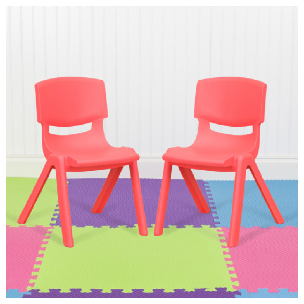 The Flash Furniture 2-YU-YCX-001-RED-GG Whiteney Stacking Chair is a versatile seating solution designed with functionality and durability in mind, particularly for preschool and kindergarten environments. With a 176 lb weight capacity, this chair is engineered to provide robust support for young children. It features a 12-inch seat height, making it perfectly proportioned for early childhood settings. Constructed from resilient polypropylene, the chair is built to withstand the rigors of daily use while maintaining its structural integrity. One of its standout features is the ability to stack up to 10 chairs high, allowing for efficient space management and easy storage in classrooms and play areas. The vibrant red color adds a lively touch to any educational environment, fostering an engaging atmosphere for young learners. Sold as a set of two, the Flash Furniture Whiteney Stacking Chair offers a practical and economical solution for educational institutions seeking reliable and space-saving seating options. This chair combines practical design with thoughtful engineering, making it an essential addition to any preschool or kindergarten setting.