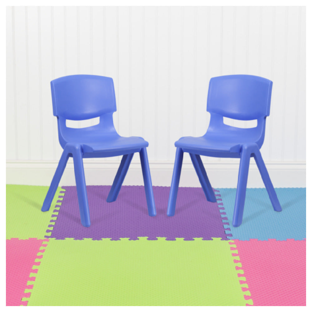 The Flash Furniture 2-YU-YCX-005-BLUE-GG Whitney Stacking Chair is a versatile seating solution designed for educational settings, specifically tailored for 3rd to 7th grade students. This chair boasts a robust weight capacity of 309 lb., emphasizing its durability and reliability in various environments. With a comfortable seat height of 15-1/2 inches, it offers ergonomic support suitable for growing students. Manufactured from high-quality polypropylene, the chair is both lightweight and durable, ensuring longevity and ease of use. One of its standout features is its ability to stack up to 10 chairs high, making it an excellent choice for spaces that require flexible seating arrangements and easy storage. The vibrant blue color adds a lively touch to any classroom or learning space, enhancing the environment's aesthetic appeal. Sold in sets of two, these chairs come ready for use with no assembly required, providing immediate convenience and functionality. This product offers a practical blend of form and function, serving as an ideal seating option in schools, libraries, or community centers where adaptable and durable seating is essential.