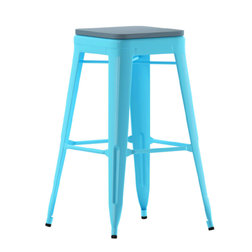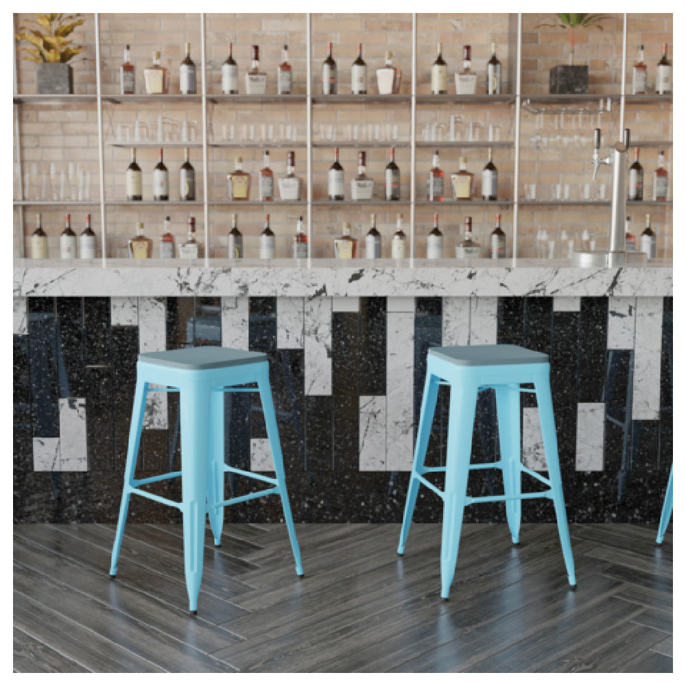 The Flash Furniture 4-ET-31320-30-TL-R-PL2C-GG Cierra Indoor Bar Stool is designed to provide both durability and style, making it an excellent choice for various indoor settings. This bar stool is crafted with a teal-blue poly resin seat and features a robust metal frame, enhanced with cross bracing for added stability. With a substantial weight capacity of 440 pounds, this stool is built to accommodate diverse users, ensuring safety and comfort. The dimensions of the stool are 17 inches in width, 17 inches in depth, and 30 inches in height, making it a compact yet comfortable seating option. A convenient footrest adds to the ergonomic design, providing additional support for users. For those concerned with floor preservation, the stool includes protective plastic floor guides to prevent scratches and damage. One of the standout features is its stackable design, making it ideal for spaces that require flexibility in seating arrangements, such as restaurants, bars, and event venues. Sold as a set of four, these stools offer a seamless blend of functionality and aesthetic appeal, catering to diverse market segments within the indoor furniture industry, from commercial establishments to contemporary home settings.