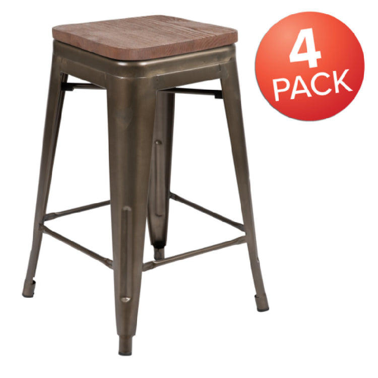 The Flash Furniture 4-ET-31320W-24-GN-R-GG Cierra Indoor Bar Stool is a versatile seating solution designed to accommodate a range of indoor settings, featuring a robust weight capacity of 440 lb. The stool measures 16"W x 16"D x 24"H, making it an ideal fit for counter-height bars and tables. Its stackable design allows for efficient storage and space-saving, making it suitable for both residential and commercial environments. The stool boasts a durable metal frame complemented by a sleek wood seat, offering both longevity and a modern aesthetic. A built-in footrest enhances user comfort, while the protective plastic floor guide ensures that flooring remains unharmed, even with frequent movement. Finished in a stylish gun metal gray, this bar stool set of four provides a cohesive and contemporary look to any setting. The Flash Furniture Cierra Indoor Bar Stool caters to various market segments, including hospitality venues, restaurants, and home bar setups, delivering a blend of style, practicality, and durability.