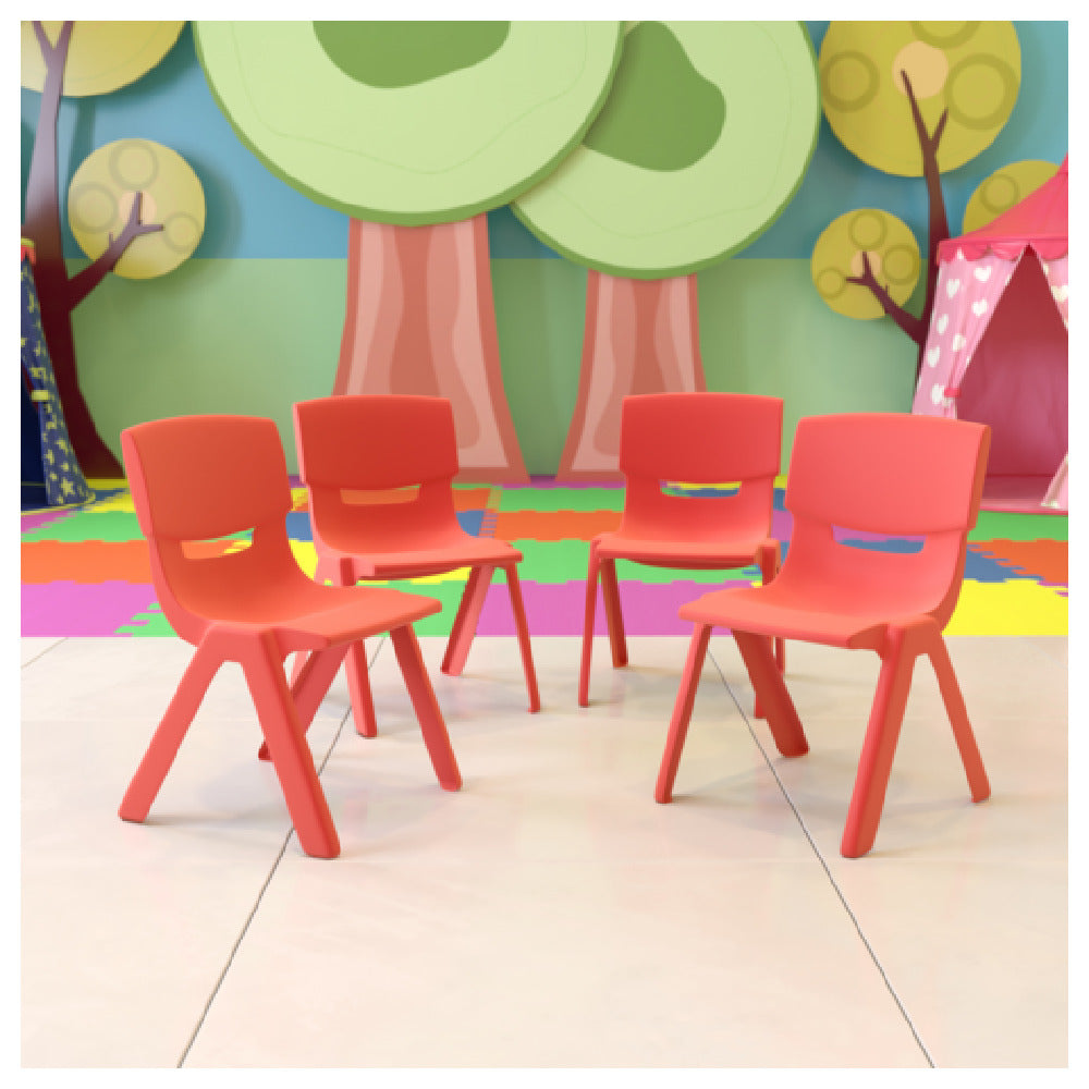 The Flash Furniture 4-YU-YCX4-001-RED-GG Whitney Stacking Chair is a versatile seating solution, tailored for preschool and kindergarten environments with its 176 lb. weight capacity and a seat height of 12 inches. Crafted from durable polypropylene, this chair is lightweight yet robust, ensuring long-lasting use in active learning spaces. The vibrant red color not only adds a lively touch to any classroom but also enhances visibility. A standout feature of this chair is its ability to stack up to 10 units, optimizing storage efficiency and making it an ideal choice for facilities with limited space. The chairs come in a convenient set of 4, catering to group settings while offering cohesion in design. Notably, the Whitney Stacking Chair requires no assembly, simplifying setup and minimizing downtime. This product is designed with young learners in mind, combining safety, functionality, and aesthetics. Its sturdy construction supports early childhood development activities, making it a valuable addition to educational institutions. The combination of practical features and thoughtful design positions the Flash Furniture Whitney Stacking Chair as a reliable choice for administrators and educators seeking quality seating solutions for young students.