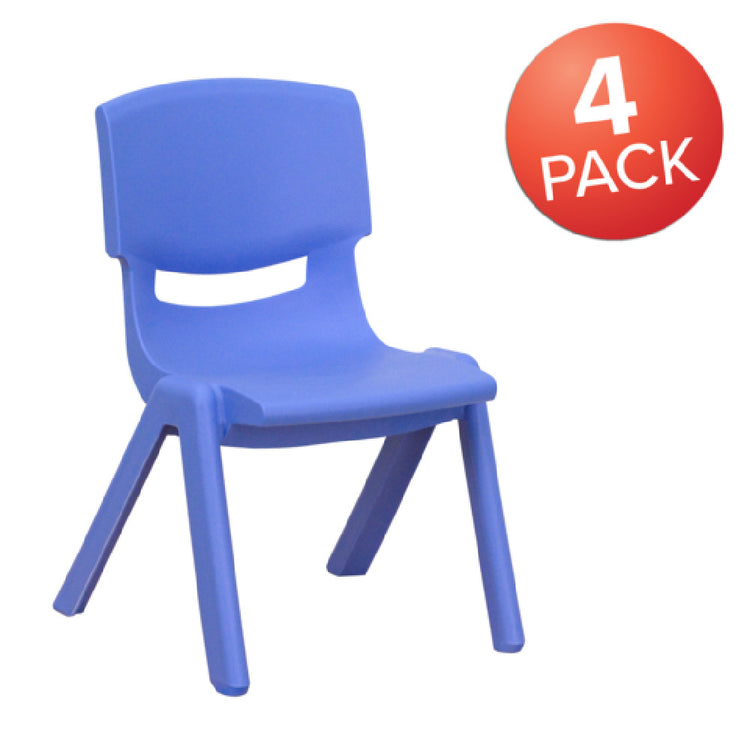 The Flash Furniture 4-YU-YCX4-003-BLUE-GG Whitney Stacking Chair is a versatile seating solution designed for the needs of preschool-aged children. With a 154 lb weight capacity, this chair ensures durability and safety for its young users. The chair features a 10-1/2" seat height, perfectly tailored for preschool environments, promoting comfort and ergonomics for children. Constructed from sturdy polypropylene, these chairs are lightweight yet resilient, making them suitable for active learning spaces. The chairs can be stacked up to 10 high, optimizing storage and space efficiency in classrooms and play areas. Available in a vibrant blue color, this set of four chairs adds a lively touch to any educational setting. Importantly, the chairs require no assembly, allowing for immediate use upon delivery, which is a significant convenience for busy educational environments. The thoughtful design and specifications make the Flash Furniture Whitney Stacking Chair an ideal choice for preschools and daycare centers, where practical, safe, and space-saving furniture is essential.