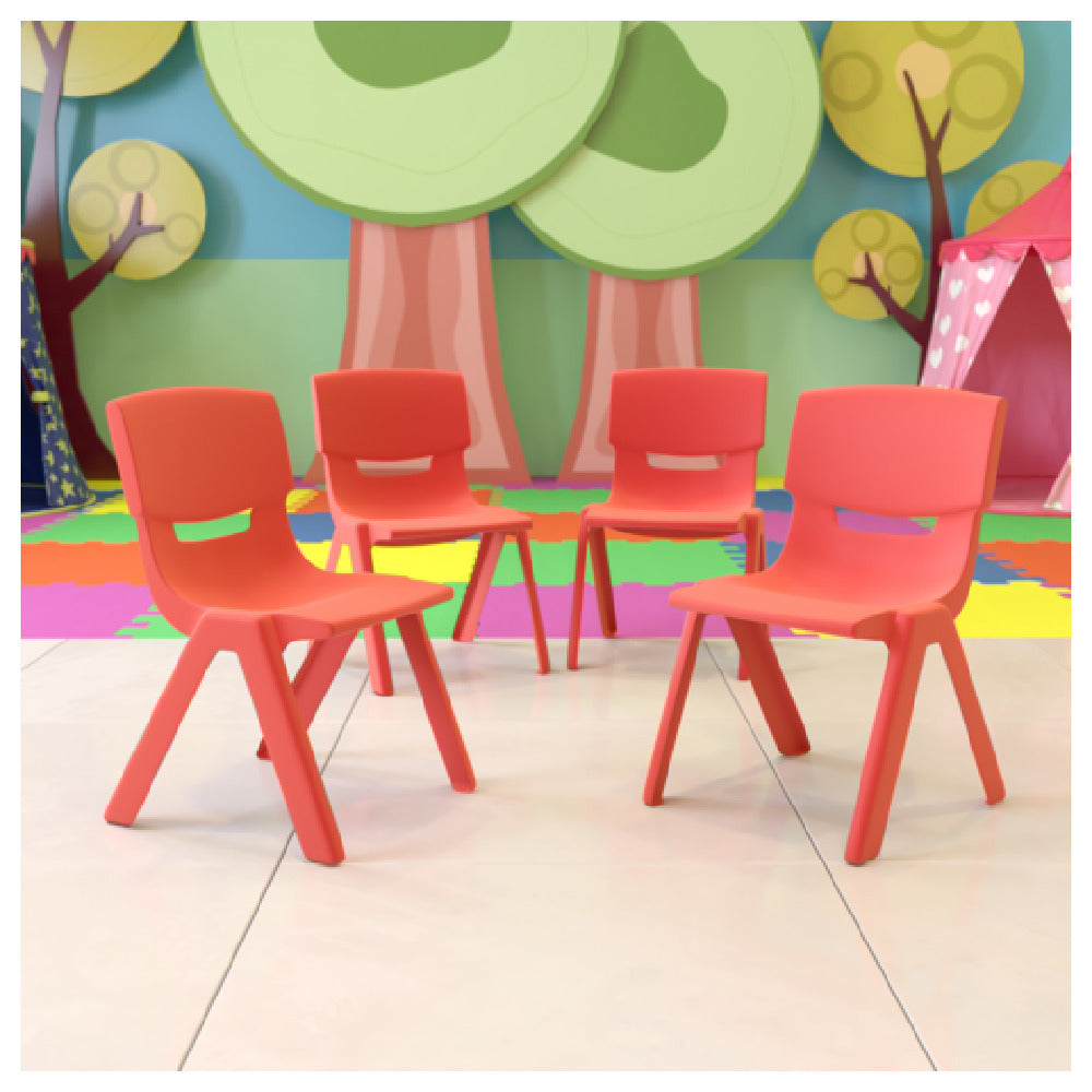 The Flash Furniture 4-YU-YCX4-004-RED-GG Whitney Stacking Chair is a versatile seating solution designed for young learners, specifically suitable for children in kindergarten through second grade. This chair boasts a sturdy polypropylene construction, ensuring durability and longevity in various settings such as classrooms, daycare centers, and recreational facilities. With a remarkable weight capacity of 286 lb., it can accommodate a wide range of users while maintaining stability and safety. The chair features a 13-1/4" seat height, ergonomically designed for comfort and proper posture alignment for young children. Its vibrant red color adds an element of fun and engagement to any environment, encouraging creativity and enthusiasm in learning spaces. One of the key advantages of this chair is its stackability, as it can be efficiently stacked up to 10 chairs high, optimizing storage space and facilitating easy organization when not in use. Sold in sets of four, these chairs arrive fully assembled, providing immediate and hassle-free setup for educators and facility managers. The Flash Furniture Whitney Stacking Chair is an ideal choice for those seeking a combination of functionality, durability, and vibrant design in children's seating solutions.
