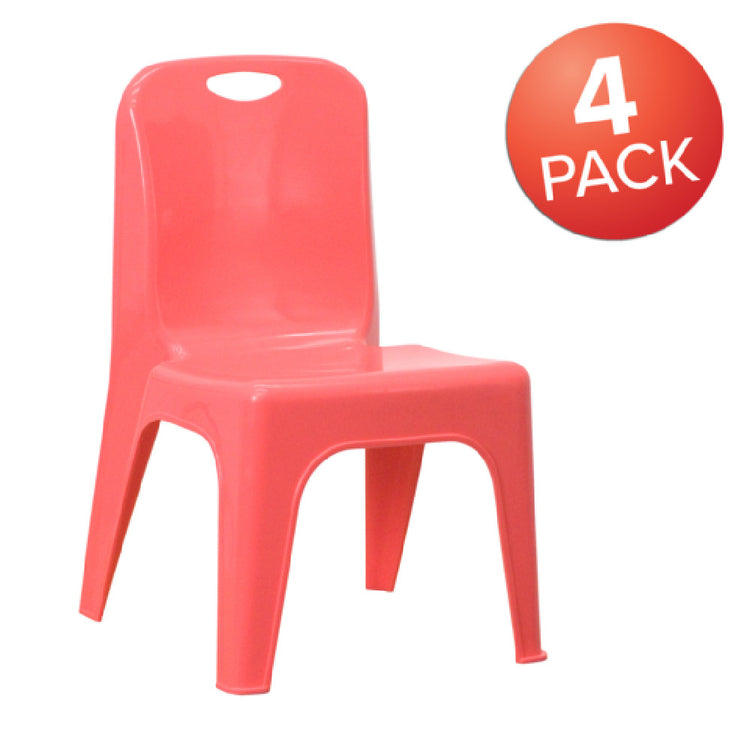 The Flash Furniture 4-YU-YCX4-011-RED-GG Whitney Stacking Chair is an ideal seating solution for preschool and kindergarten settings, designed with a focus on safety and functionality for young children. With a weight capacity of 110 lb. and an 11-inch seat height, these chairs provide suitable support and comfort for children within this age range. The chair features a convenient carrying handle that allows for easy transport and arrangement within the classroom. Constructed from durable polypropylene, this chair is both lightweight and resilient, ensuring longevity in high-use environments. A standout feature of the Whitney Stacking Chair is its ability to be stacked up to 15 chairs high, maximizing space efficiency when not in use. The vibrant red color adds a cheerful aesthetic to any learning space, enhancing the educational environment. Sold as a set of four, these chairs come fully assembled, saving time and effort for educators and facility managers. The combination of practicality, durability, and child-friendly design makes the Flash Furniture Whitney Stacking Chair a valuable addition to educational institutions, effectively meeting the demands of classroom seating with flair and functionality.