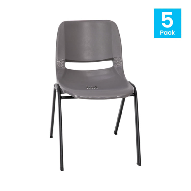 The Flash Furniture 5-RUT-16-PDR-GY-GG Hercules Series Student Shell Stacking Chair is a robust seating solution designed to cater to diverse educational environments. With a remarkable weight capacity of 661 lbs, this chair is engineered to accommodate a wide range of student sizes, making it ideal for 3rd to 7th grade students. Its ergonomic construction features a plastic seat and back, offering comfort and support, while the vented back design ensures proper airflow. The chair is practical for both indoor and outdoor settings, thanks to its durable black powder-coated metal frame. The inclusion of double support rails enhances its stability, and the plastic floor glides protect surfaces from scratches. For convenience, it stacks up to 15 chairs high, optimizing storage space. Additionally, the seat drain holes are a thoughtful design element for quick drying when used outdoors. Available in a set of five, these gray chairs arrive fully assembled, and in-stock items generally ship within 24 hours. This chair is a versatile choice for schools and community centers, providing reliable and ergonomic seating that meets the rigorous demands of commercial use.