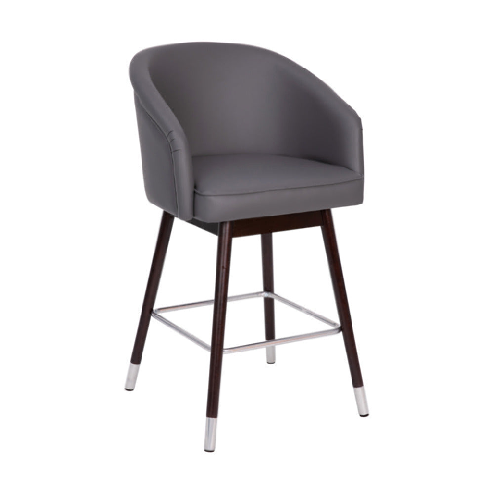 Flash Furniture AY-1928-26-GY-GG Margo Counter Stool Mid-back 26" Seat Height is a stylish and functional seating solution featuring a mid-back design and a 26-inch seat height, making it versatile for various counter spaces. The stool is upholstered in a sleek gray leather, providing both comfort and a modern aesthetic. Its contoured back enhances ergonomic support, ensuring a comfortable seating experience for extended periods. The stool's legs are made from beechwood with a walnut finish, complemented by bronze accents, adding a touch of elegance and sophistication. Ideal for residential kitchens, cafes, or bar areas, this counter stool combines durability with contemporary design. The walnut finish on the beechwood legs offers a rich, warm tone that contrasts beautifully with the gray leather, making it suitable for a range of interior styles. This product is typically available for quick shipping, with in-stock items generally dispatched within 24 hours, ensuring an efficient purchasing process. The Flash Furniture AY-1928-26-GY-GG Margo Counter Stool provides a blend of style, comfort, and practicality, catering to various market segments looking for quality seating solutions.
