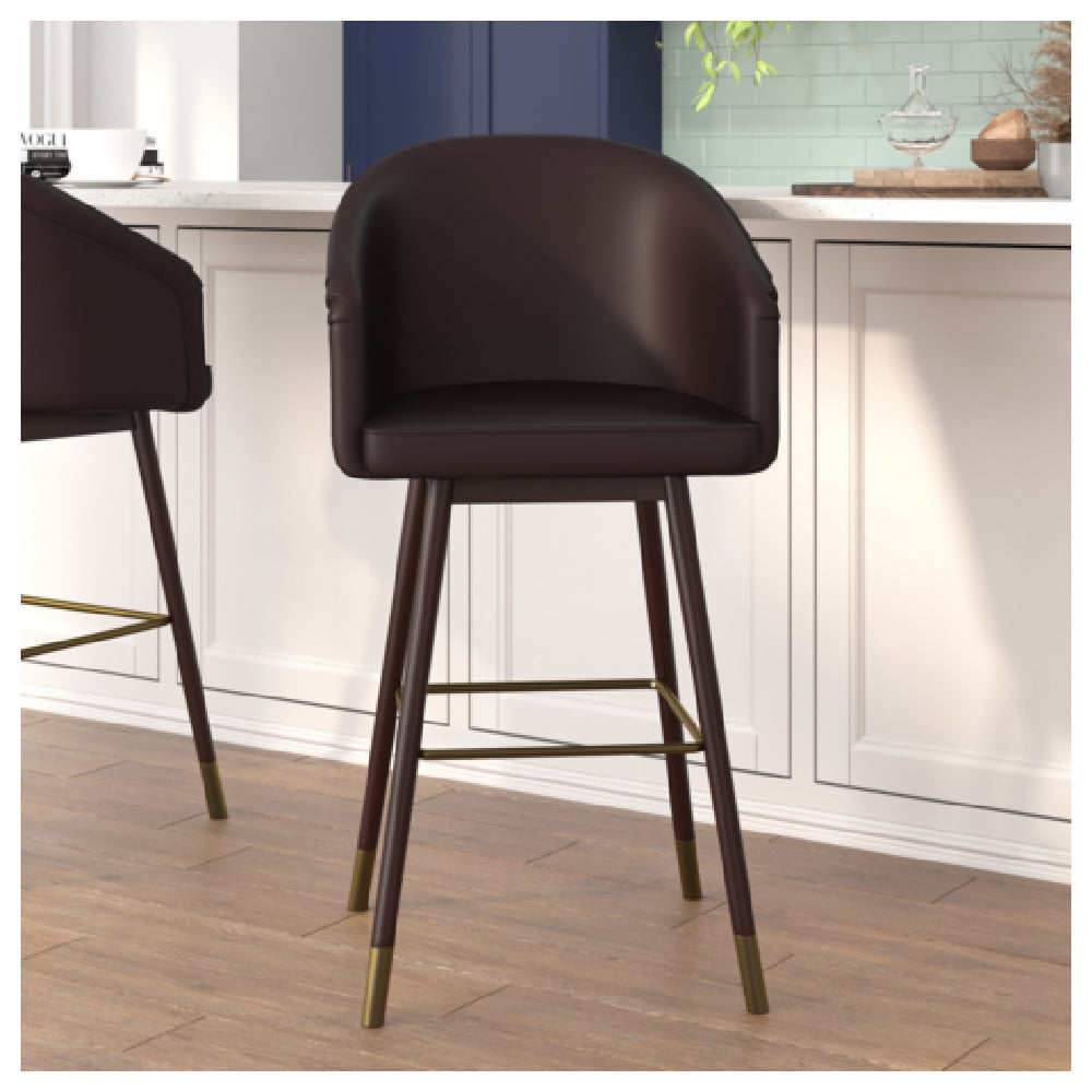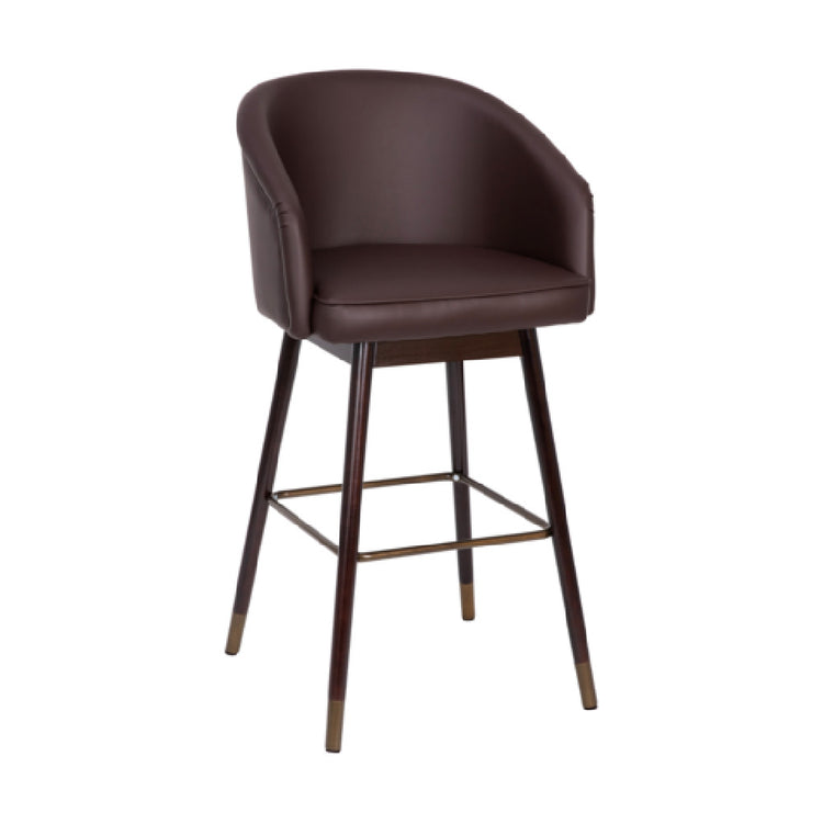 The Flash Furniture AY-1928-30-BR-GG Margo Bar Stool Mid-back 30" Seat Height is a sophisticated seating option designed to enhance both residential and commercial spaces. Featuring a 30-inch seat height, this bar stool is ideal for tall counters and bar settings. The mid-back design provides support and comfort, while the brown leather upholstery adds a touch of elegance and durability to the seating experience. The contoured back is crafted to follow the natural curve of the spine, promoting ergonomic support during extended periods of sitting. This bar stool stands on sturdy walnut finish beechwood legs, which are accentuated with bronze details, creating a stylish contrast that complements various décor styles. The thoughtful design of the Flash Furniture AY-1928-30-BR-GG Margo Bar Stool makes it a versatile choice for different markets, including hospitality, home entertainment, and commercial venues. Its quick shipping availability, with in-stock items typically dispatching within 24 hours, ensures that it can meet the demands of fast-paced environments. Whether used in a bustling bar or a cozy kitchen island, this bar stool seamlessly combines practicality with aesthetic appeal, making it a valuable addition to any setting where style and comfort are paramount.
