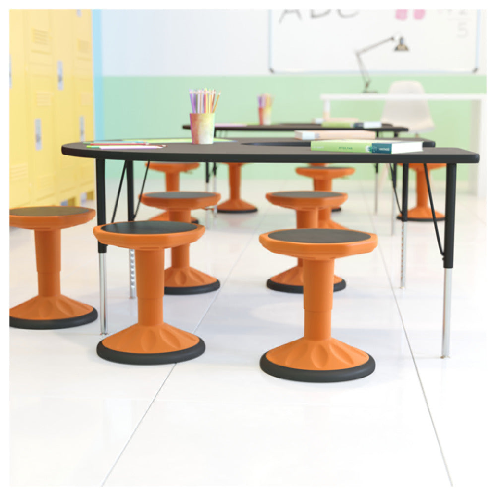 The Flash Furniture AY-9001S-OR-GG Carter Stool is a versatile seating solution with a weight capacity of 250 lb., making it suitable for various environments and users. With an adjustable height range of 14 inches to 18 inches, it caters to different seating preferences and applications. The 360-degree swivel feature enhances user mobility and ease of access, while the rubberized seat provides comfort and durability. The stool is supported by a robust polypropylene frame, ensuring stability and longevity. Designed with a non-slip bottom, it guarantees safety by preventing unwanted movement on different surfaces. Recommended for ages 5 and older, this stool is ideal for classrooms, home use, and casual seating areas. Offered in a vibrant orange hue, it adds a pop of color to any setting. Additionally, the stool requires no assembly, allowing for immediate use upon delivery. The Flash Furniture AY-9001S-OR-GG Carter Stool combines functionality with style, making it an appealing choice for a range of market segments seeking reliable and adjustable seating options.
