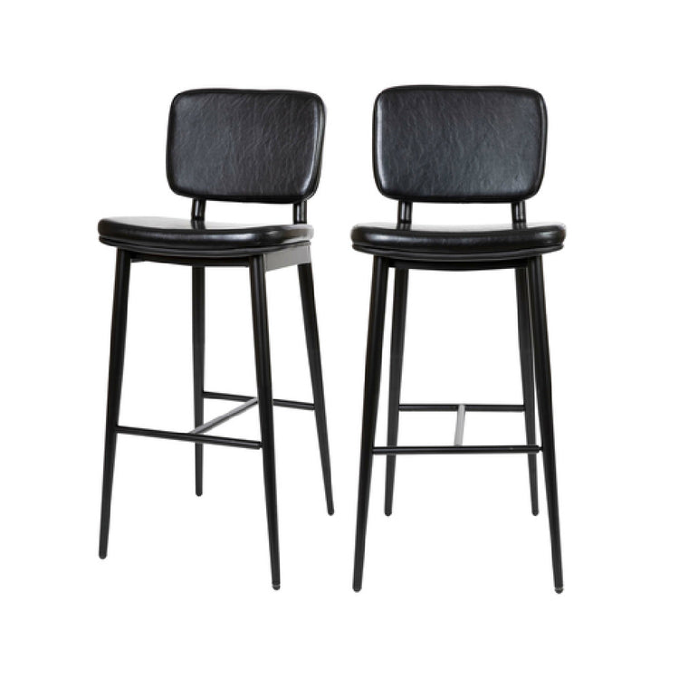The Flash Furniture AY-S01-BK-GG Kenzie Barstool is designed with a 31-inch high seat and features a mid-back design that offers comfortable support for extended seating. This barstool is upholstered with a sleek black fabric, providing a modern aesthetic that complements various interior styles. The sturdy black powder-coated iron frame ensures durability and stability, making it suitable for both residential and commercial use. Equipped with a convenient footrest, this barstool enhances seating comfort, catering to diverse user needs. The inclusion of protective floor glides serves to prevent scratches and damage to flooring, making it an ideal choice for venues with high foot traffic. As a set of two, these barstools require assembly, allowing for easy transportation and setup in any space. The Flash Furniture AY-S01-BK-GG Kenzie Barstool is a versatile seating solution, offering both functionality and style for kitchens, bars, and cafes.