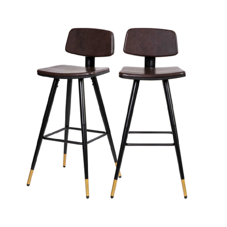Flash Furniture AY-S02-BR-GG Kora Barstool 29-3/4"H Seat Low-back Design is a stylish and functional seating solution designed for various environments, from modern kitchens to contemporary restaurant bars. The barstool features a 29-3/4-inch-high seat that provides an elevated seating position, ideal for high tables and counters. Its low-back design offers comfort without compromising on style, making it a perfect fit for minimalist decor. The upholstery in a rich brown color adds a touch of elegance while ensuring easy maintenance. For durability, the frame is crafted from black powder-coated iron, providing robust support and long-lasting performance. To enhance its aesthetic appeal, the legs are elegantly tipped in gold, adding a sophisticated look that complements the overall design. Thoughtfully designed with a footrest, this barstool ensures comfort during prolonged sitting periods. Protective floor glides are included to prevent scratches and scuffs on flooring. The set consists of two barstools, providing convenient seating solutions for small gatherings or intimate spaces. Assembly is required, allowing users to experience a hands-on setup process. This versatile barstool is an excellent addition to any space, offering a combination of comfort, style, and practicality for diverse market segments within the furniture industry.