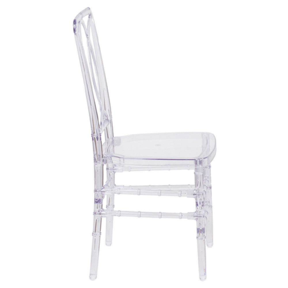 The Flash Furniture BH-H007-CRYSTAL-GG Flash Elegance Stacking Chiavari Chair is a versatile seating solution designed for both indoor and outdoor commercial use. With a remarkable weight capacity of 800 lbs, this chair provides robust support and stability, making it ideal for a wide range of industries, from hospitality to event management. Constructed from durable polycarbonate material, this crystal ice chair is both lightweight and UV resistant, ensuring longevity and protection against sun damage. Its innovative wobble-free construction guarantees a stable seating experience, while the clear floor glides protect surfaces and facilitate smooth movement. The stacking capability allows up to 10 chairs to be conveniently stored, optimizing space and providing efficient storage solutions. This chair is shipped fully assembled, offering immediate usability. Additionally, in-stock items typically ship within 24 hours, making it a practical choice for businesses with time-sensitive requirements. The Flash Furniture Chiavari Chair combines elegant design with functional features, making it a valuable asset for environments that demand both style and durability.