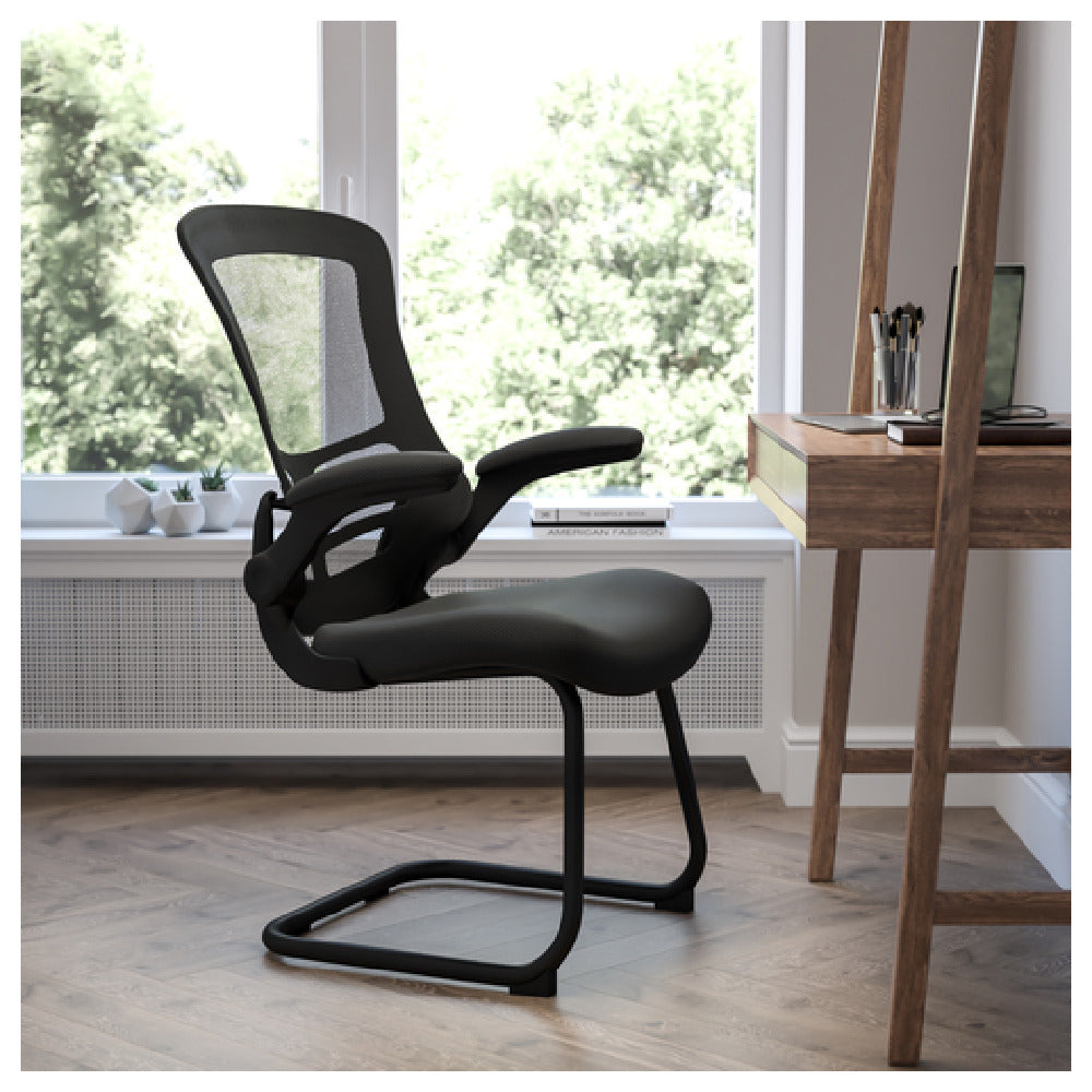 The Flash Furniture BL-X-5C-GG Chair is a versatile seating solution designed for comfort and durability, accommodating users up to 250 pounds. Measuring 24-3/4 inches in width, 24-1/2 inches in depth, and 39-1/4 inches in height, this chair is suitable for various environments, including office settings and home workstations. It features a breathable mesh back that enhances airflow, promoting long-lasting comfort during extended periods of use. The chair is equipped with lumbar support, providing ergonomic benefits by encouraging proper posture and reducing strain on the lower back. A foam seat offers plush comfort, while the padded flip-up arms add flexibility and convenience, allowing the user to customize their seating experience. Additionally, the chair includes non-skid anti-tilt floor levers, ensuring stability and safety on various surfaces. The sleek black finish adds a touch of modern elegance to any space. The Flash Furniture BL-X-5C-GG Chair is an excellent choice for professionals seeking a reliable and comfortable chair that meets both functional and aesthetic needs.