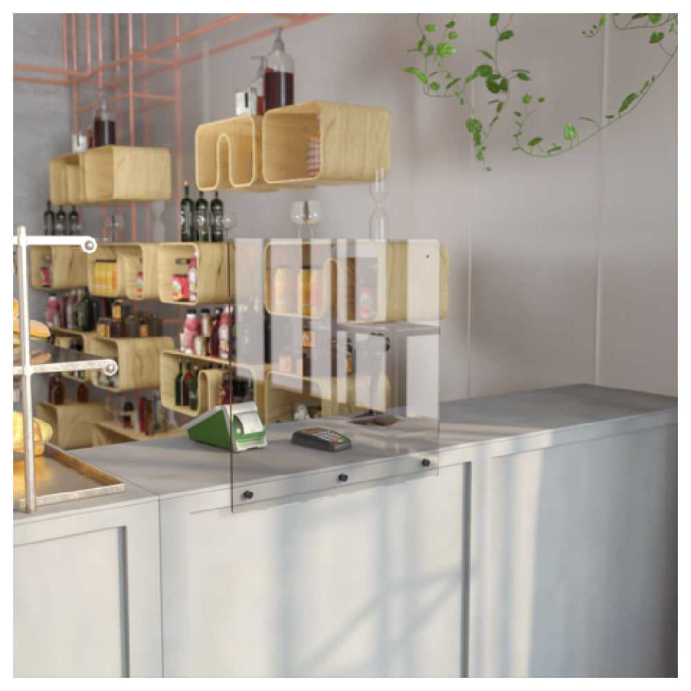 - Ensures safety with its 24"L x 24"H clear acrylic shield