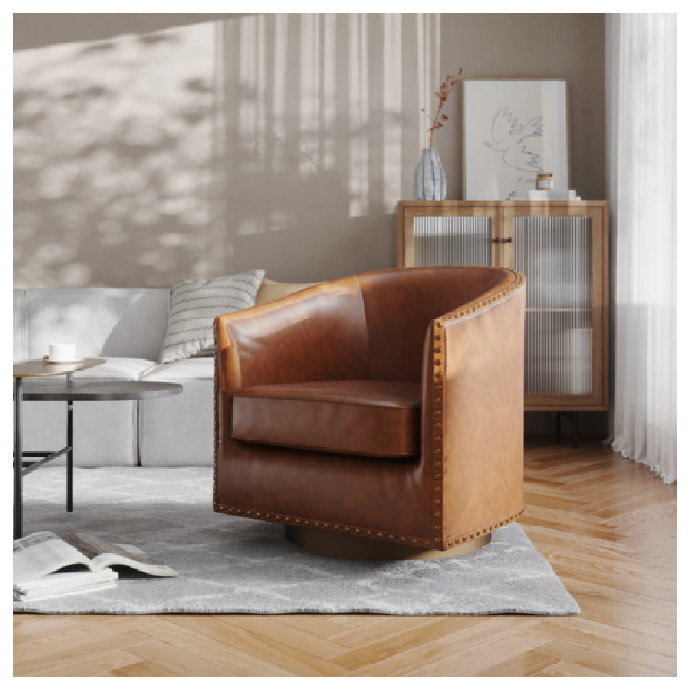- Myles Club Style Commercial Barrel Accent Armchair with 360-degree swivel
