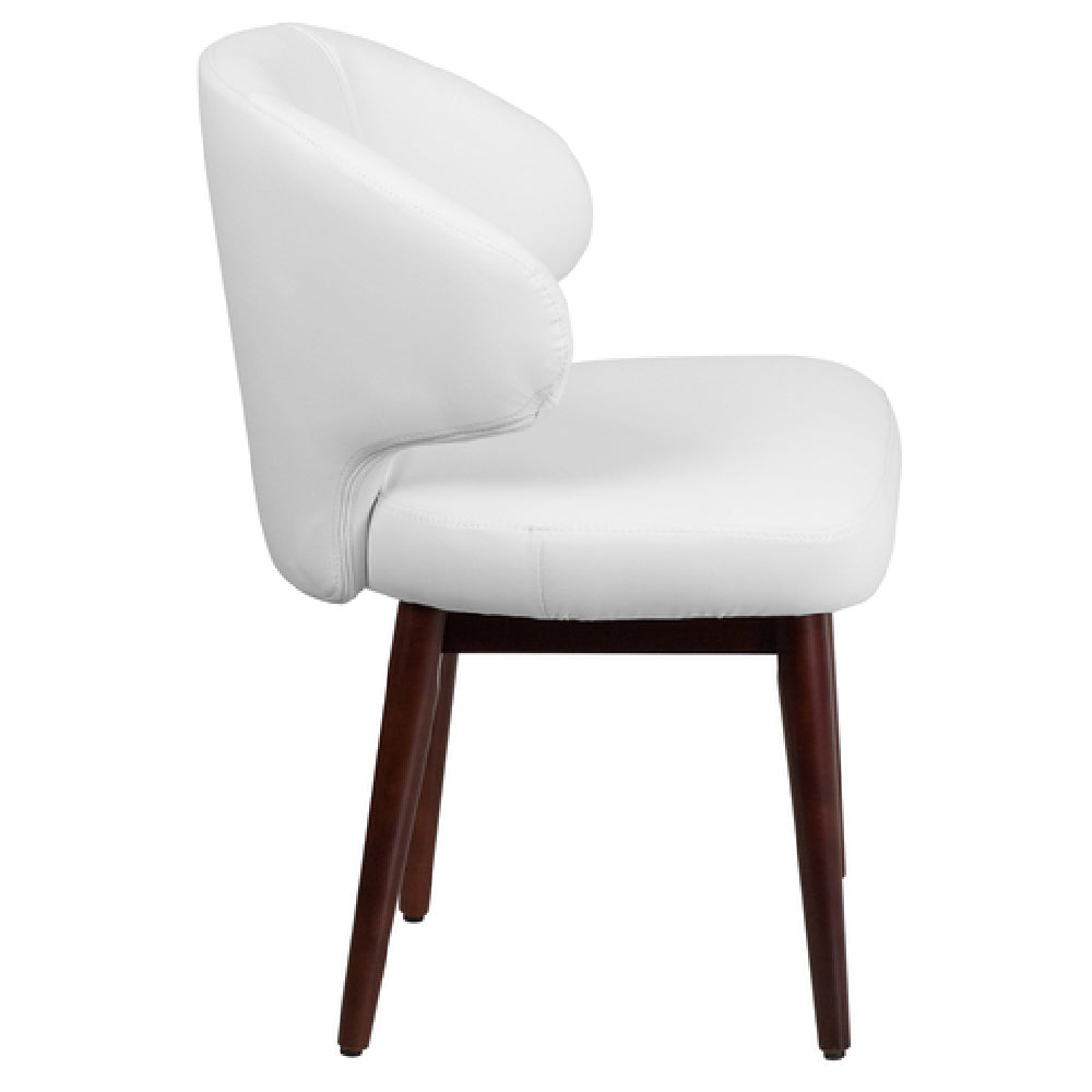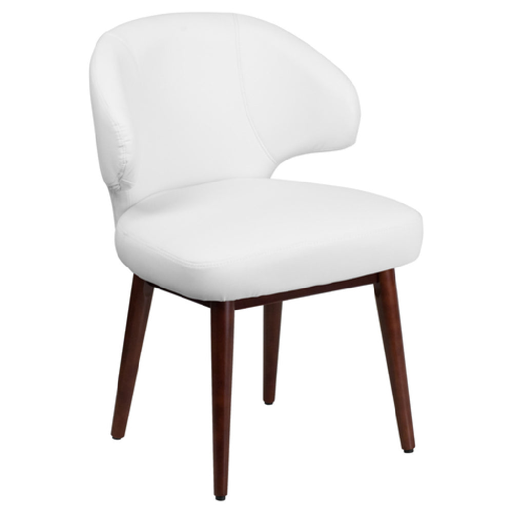 Flash Furniture BT-2-WH-GG Comfort Back Series Executive Guest Chair Curved Back combines sophisticated design with practical functionality, making it an excellent choice for a variety of professional environments. The chair features a distinctively curved back, ensuring ergonomic support and comfort for guests or clients. Its LeatherSoft upholstery provides a luxurious feel while ensuring durability, combining leather and polyurethane for added softness and resilience. Safety is prioritized with CA117 fire retardant foam, meeting stringent fire safety standards. The chair is supported by a robust walnut beechwood frame and complemented by elegant walnut legs, adding a touch of classic style to any office or reception area. Adjustable floor glides are included to accommodate various flooring types, enhancing stability and protecting surfaces from scratches. The chair is available in a sleek white finish, offering a modern aesthetic. Assembly is required upon purchase, and in-stock items typically ship within 24 hours, ensuring prompt delivery. This executive guest chair is ideal for corporate settings, hospitality venues, or any upscale environment where comfort and style are paramount.