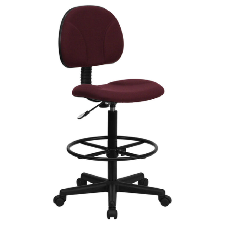 The Flash Furniture BT-659-BY-GG Ergonomic Swivel Drafting Stool is a precisely engineered seating solution designed to enhance comfort and functionality in professional settings. This stool features an adjustable height range of 38-1/4" to 42-3/4", accommodating varying desk heights and user preferences. It supports a weight capacity of up to 250 lbs., ensuring durability and stability. The low back design provides essential support while promoting a healthy posture, complemented by a contoured seat and back for enhanced ergonomic comfort. Upholstered in a pin dot patterned polyester, this stool combines style with practicality. A back depth adjustment knob allows for personalized support, while the accordion back cover adds a touch of sophistication. With adjustable cylinder heights of 22-1/2" to 27" or 26" to 30-1/2", and a height adjustable black foot ring, it provides versatile user accommodation. Constructed with CA117 fire retardant foam, a heavy-duty black nylon base, and dual wheel casters, this stool ensures safety and mobility. Its burgundy finish adds a professional aesthetic, making it suitable for various industry segments, from design studios to medical labs. This stool requires assembly and is typically ready to ship within 24 hours.