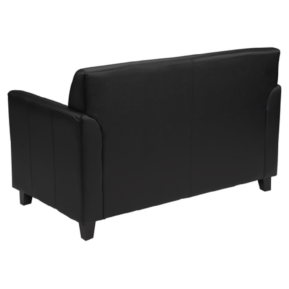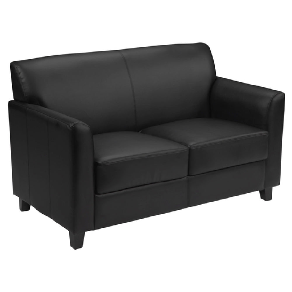 The Flash Furniture BT-827-2-BK-GG Hercules Diplomat Series Reception Loveseat is crafted to meet the sophisticated needs of any professional reception area. Measuring 52 inches in width, 29 inches in depth, and 32-1/4 inches in height, this loveseat provides ample seating while maintaining a compact footprint suitable for smaller spaces. Its LeatherSoft upholstery, a blend of leather and polyurethane, provides a soft, durable finish that complements its contemporary styling. The loveseat's flared arms and plush seat and back are designed to offer both comfort and style. Fixed seat and back cushions are filled with CA117 fire retardant foam, ensuring safety without compromising on comfort. The loveseat's sturdy hardwood construction provides reliable support, enhanced by black wood feet that add an elegant touch. This piece is designed for easy assembly, with items in stock typically shipping within 24 hours. Ideal for corporate offices, hotel lobbies, or high-end residential use, the Hercules Diplomat Series Reception Loveseat combines aesthetic appeal with practical functionality, making it a versatile and valuable addition to any setting where first impressions are paramount.