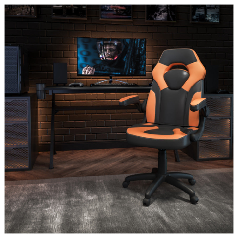 Flash Furniture CH-00095-OR-GG X10 Gaming Chair 250 Lb. Weight Capacity LeatherSoft Upholstery With Mesh Inserts