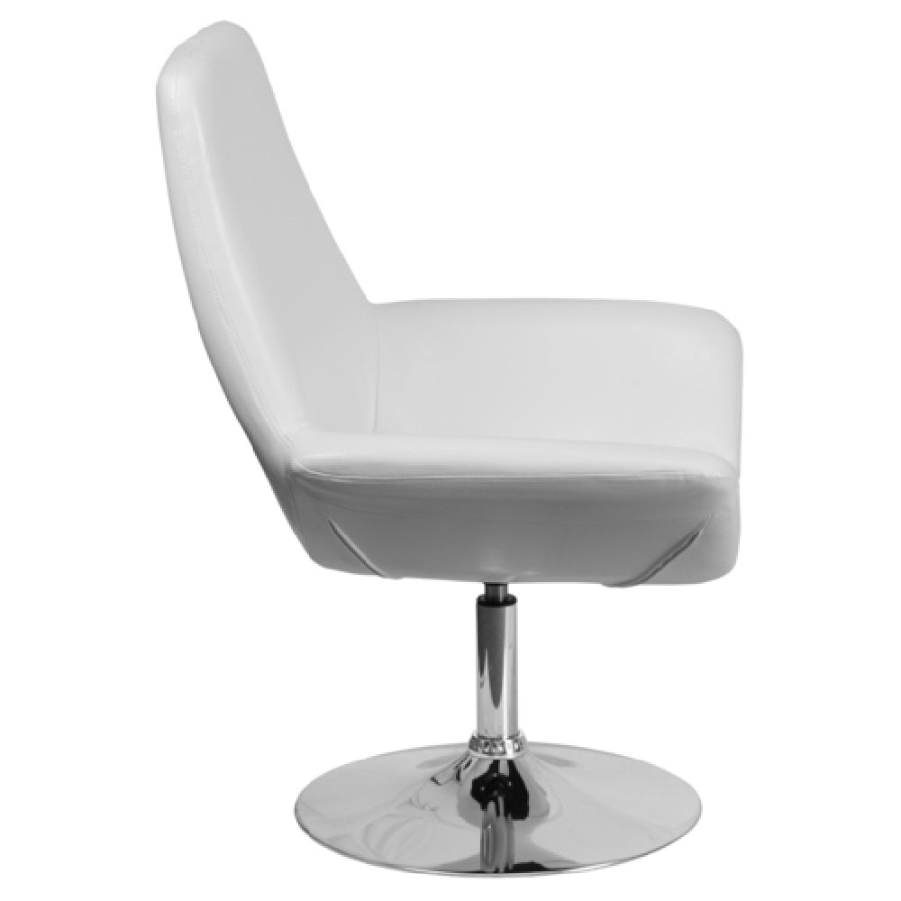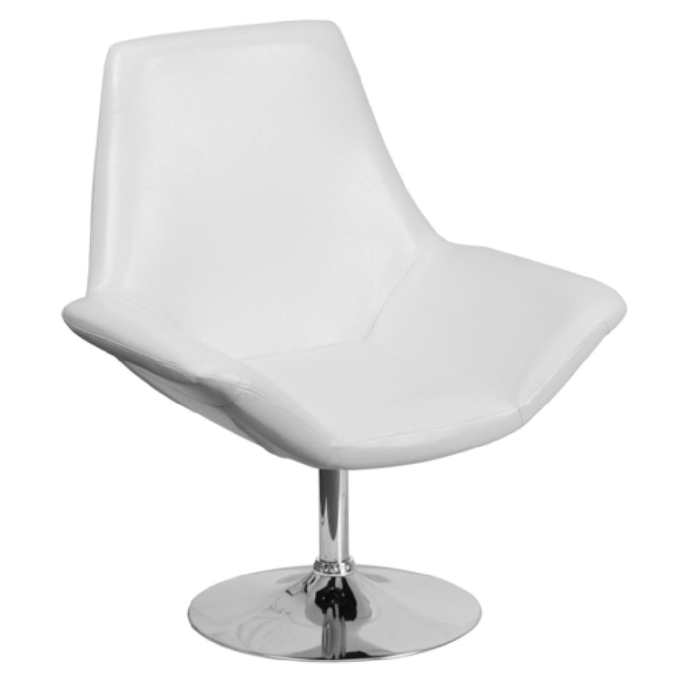 The Flash Furniture CH-102242-WH-GG Hercules Sabrina Series Swivel Reception Chair is a sophisticated seating solution designed for modern reception areas, offering a blend of comfort and style. This chair features integrated arms and is upholstered with LeatherSoft, a combination of leather and polyurethane that provides a soft and durable seating surface. Its CA117 fire retardant foam ensures safety and compliance with fire safety standards, making it an ideal choice for environments that prioritize occupant safety. The chair is supported by a 19-1/2" diameter chrome base, which not only enhances its aesthetic appeal but also ensures stability and durability. The elegant white finish adds a touch of sophistication to any setting, making it suitable for various market segments, from corporate offices to hospitality venues. With its swivel functionality, this chair offers flexibility and ease of movement, contributing to a dynamic and functional reception area. Assembly is required, but the straightforward design ensures that you can enjoy this stylish chair without hassle. In-stock items typically ship within 24 hours, allowing for quick and efficient setup in your space. This chair represents a valuable investment for businesses seeking both functionality and elegance in their reception furniture.