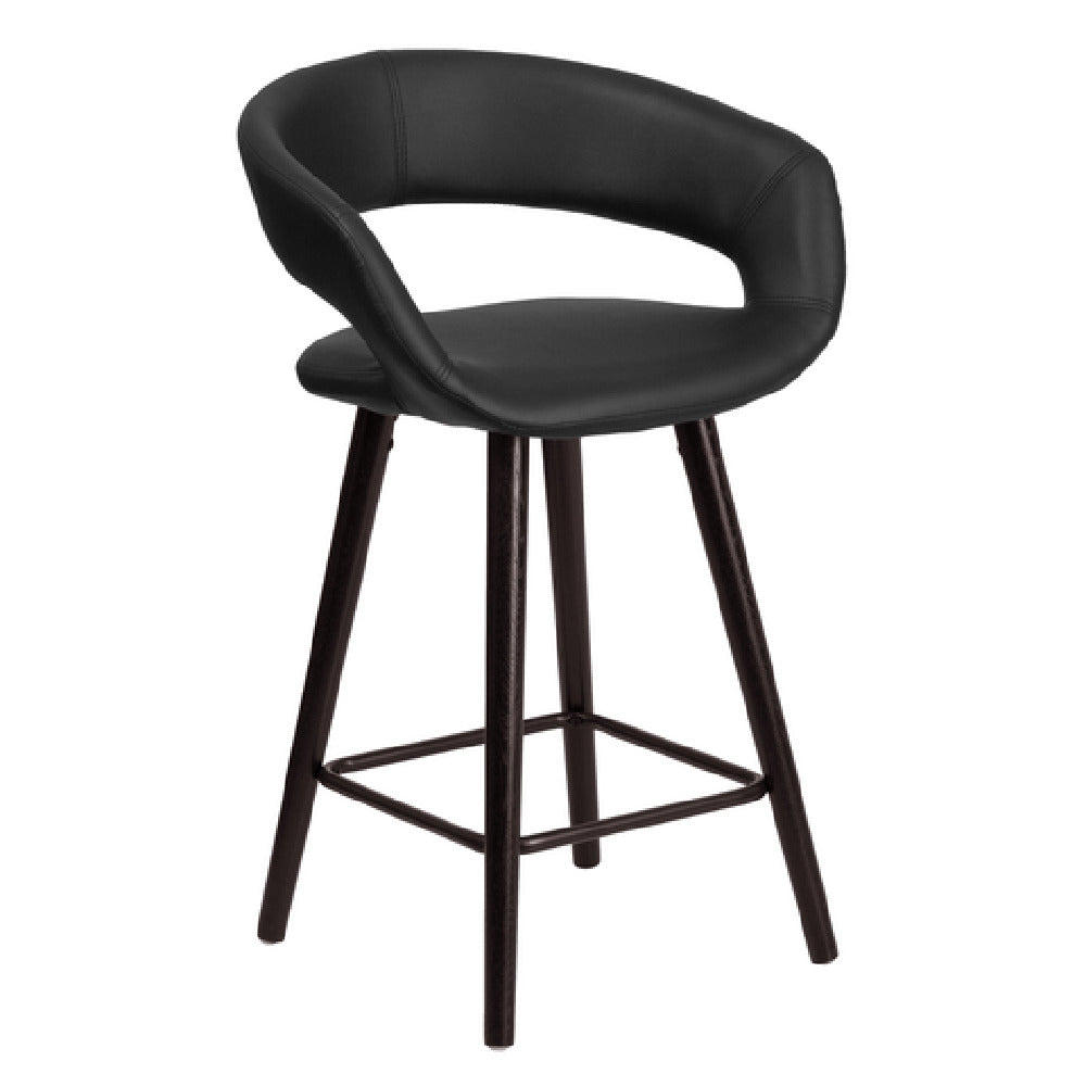 The Flash Furniture CH-152561-BK-VY-GG Brynn Series Bar Stool - 24"H Seat Counter Height is a contemporary seating solution designed for both functionality and style. Featuring a 24-inch seat height, this bar stool is tailored for counter-height seating arrangements, making it suitable for kitchen islands and home bars. The stool's low back design and upholstered rounded back provide comfort and support, while the upholstered seat, filled with CA117 fire retardant foam, ensures safety and durability. Constructed with a sturdy wood frame, it boasts a cappuccino finish that adds a touch of elegance to any residential setting. The integrated footrest enhances comfort during extended periods of sitting, and the protective floor glides prevent scratches on flooring surfaces. Upholstered in black vinyl, this bar stool requires assembly upon delivery. Notably, in-stock items typically ship within 24 hours, offering prompt delivery for those in need of immediate seating solutions. Tailored for residential use, the Flash Furniture Brynn Series Bar Stool combines modern aesthetics with practical features, making it a versatile choice for homeowners seeking to enhance their interior décor while ensuring comfort and safety. Its design and construction make it a valuable addition to various residential environments, reflecting a commitment to quality and style.