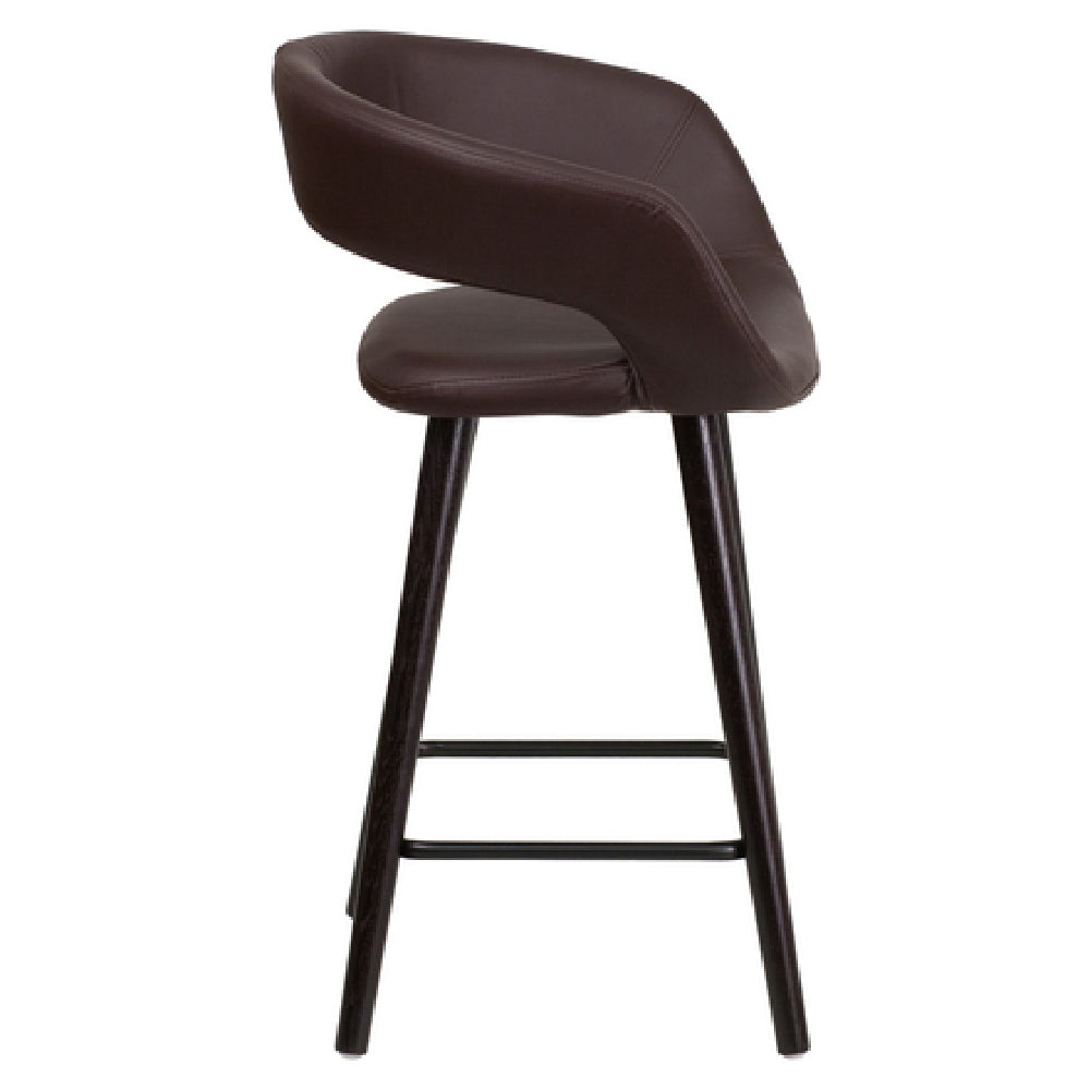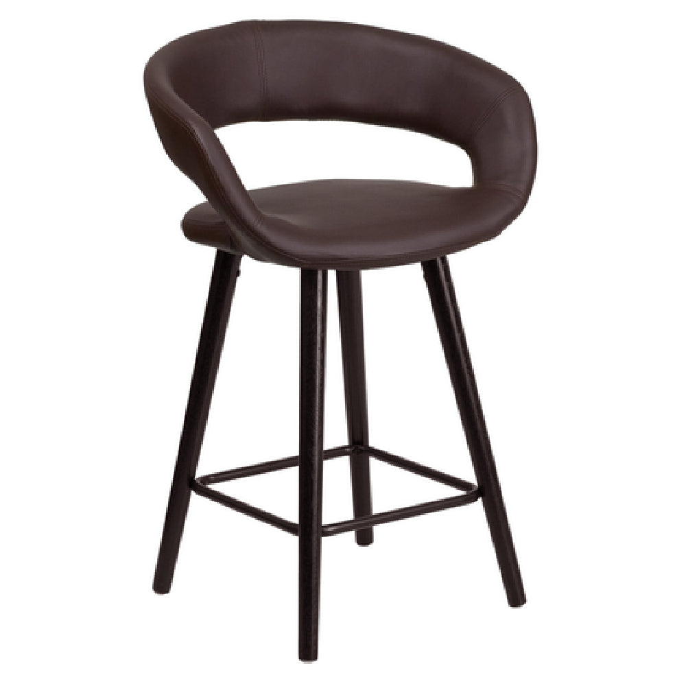 The Flash Furniture CH-152561-BRN-VY-GG Brynn Series Bar Stool 24"H Seat Counter Height is a contemporary seating solution designed for both style and functionality. Featuring a 24-inch seat height, this bar stool is tailored for counter height settings, making it a versatile choice for residential environments. The stool boasts a low back design with an upholstered rounded back and seat for comfort, filled with CA117 fire retardant foam ensuring safety. Its wood frame, finished in an elegant cappuccino, adds a touch of sophistication, while the brown vinyl upholstery complements a variety of interior décors. The inclusion of a footrest enhances user comfort, and protective floor glides prevent surface damage, making the stool practical for everyday use. This product requires assembly and is conveniently available for quick shipping, with in-stock items typically dispatched within 24 hours. The Flash Furniture Brynn Series Bar Stool combines aesthetic appeal with thoughtful design features, making it an ideal choice for those seeking a stylish yet functional seating option for their home counter spaces.