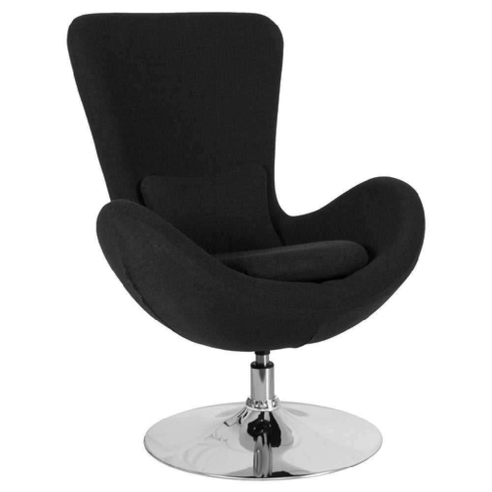 The Flash Furniture CH-162430-BK-FAB-GG Egg Series Swivel Reception/Lounge/Side Chair is a modern seating solution designed to enhance comfort and style in various settings. This chair features integrated curved arms that provide ergonomic support, making it suitable for reception areas, lounges, or as a side chair in different environments. The chair includes a 13"W x 10"H x 2" thick lumbar pillow to ensure optimal lower back support. Its seat cushion is crafted with high-quality fabric upholstery, adding a touch of elegance to any space. Safety and quality are prioritized with the inclusion of CA117 fire retardant foam, assuring users of its compliance with fire safety standards. The chair's 21-1/2" diameter chrome base not only offers stability but also complements its sleek design. Its swivel functionality adds versatility, allowing users to move freely without having to reposition the chair. Available in black, this chair requires assembly, catering to different market needs by offering a balance of aesthetics, functionality, and safety. The Flash Furniture Egg Series chair is an excellent choice for businesses and individuals seeking a stylish, comfortable, and secure seating option that aligns with modern interior design trends.