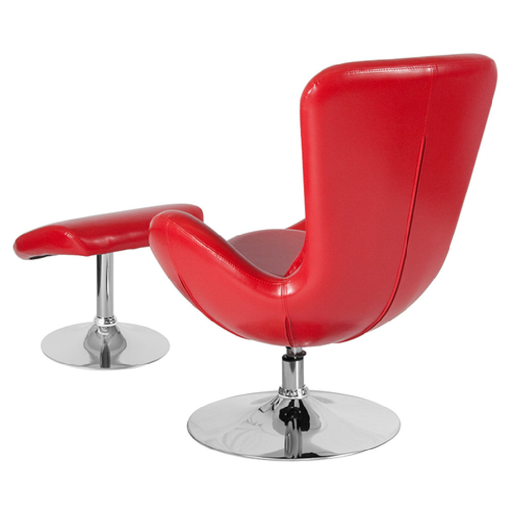 The Flash Furniture CH-162430-CO-RED-LEA-GG Swivel Egg Chair & Ottoman Set is a contemporary style seating solution that combines functionality with modern design. Featuring integrated curved arms and a sleek red LeatherSoft upholstery, this set exemplifies comfort and style. The chair includes a lumbar pillow to support ergonomic seating, catering to diverse user needs in various settings such as offices, lounges, or home interiors. Its ottoman measures 19-1/2 inches in width, 15 inches in depth, and 17-1/2 inches in height, providing a complementary footrest for relaxation. A standout feature is the 360-degree swivel capability, supported by a 21-1/2 inch diameter round pedestal chrome base, ensuring smooth mobility and stability. The chair is equipped with CA117 Fire Retardant Foam, emphasizing safety and compliance with fire standards. This set's design caters to markets demanding both aesthetic appeal and practical functionality, making it a versatile choice for contemporary environments seeking to enhance user comfort and interior elegance.