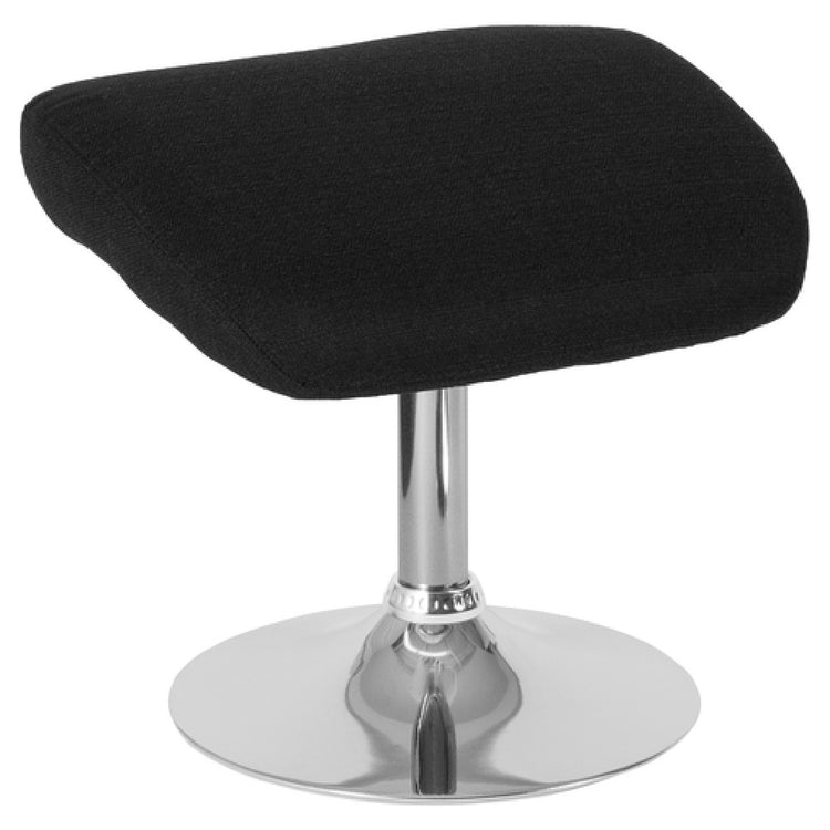 The Flash Furniture CH-162430-O-BK-FAB-GG Egg Series Ottoman is a distinctive piece with dimensions of 19-1/2"W x 15"D x 17-1/2"H, perfect for enhancing contemporary spaces. This ottoman is meticulously upholstered in fabric, providing both comfort and a modern aesthetic. It is built with CA117 fire retardant foam, ensuring it meets fire safety standards while delivering plush support. The ottoman's foundation is a stylish 13" diameter chrome base, offering stability and a sleek finish. The black color complements a variety of interior designs, making it a versatile addition to any setting. This piece is ideal for different market segments, including residential living rooms seeking a contemporary accent, office settings aiming to add stylish, functional seating options, and hospitality environments that require durable and sophisticated furniture. The Egg Series Ottoman merges aesthetic appeal with practical features, making it a valuable asset for spaces prioritizing both style and function.