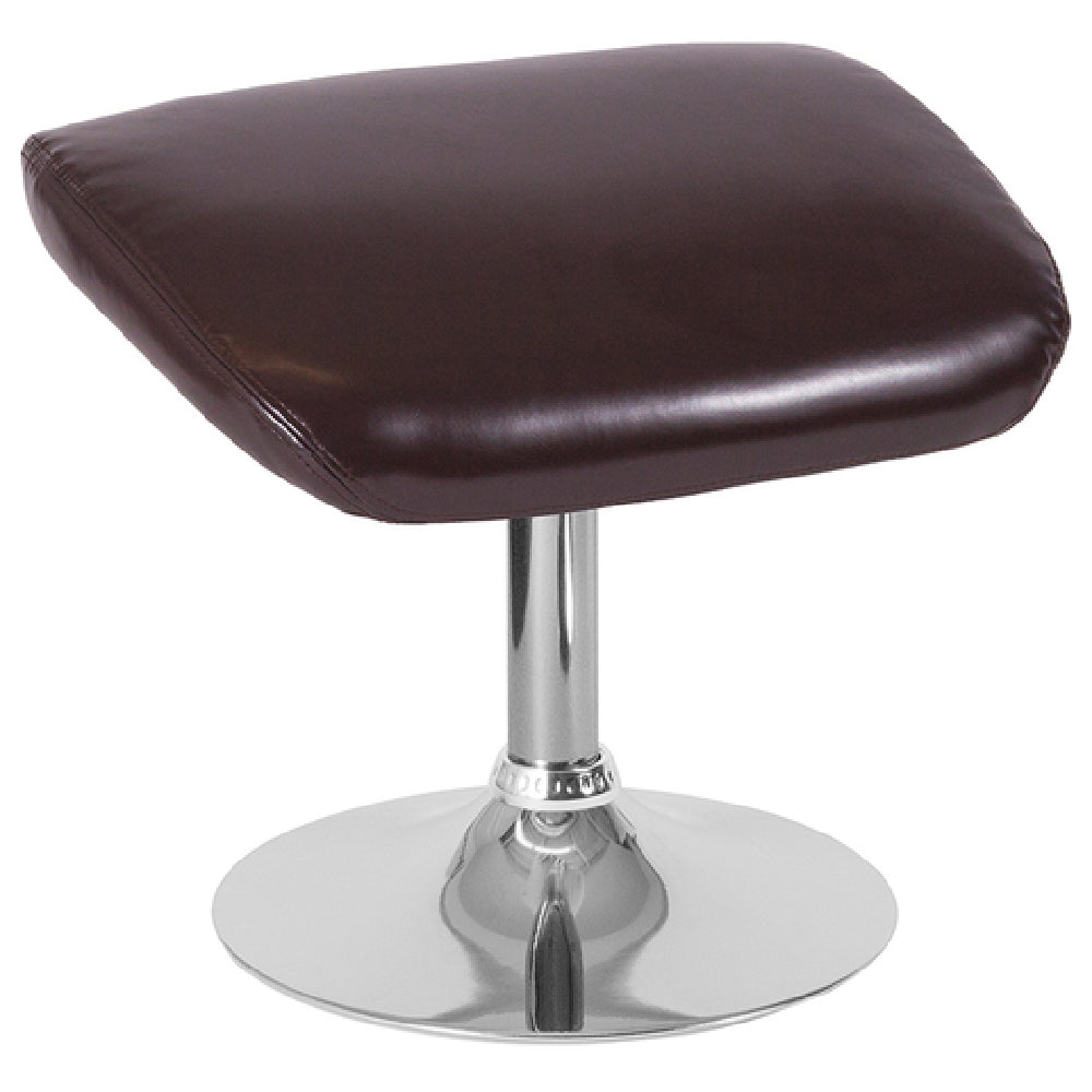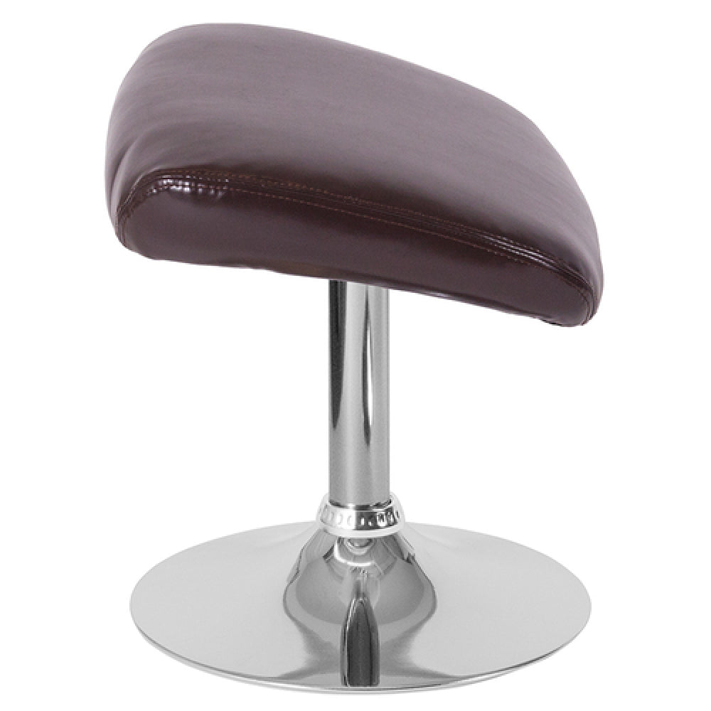 The Flash Furniture CH-162430-O-BN-LEA-GG Egg Series Ottoman is a meticulously crafted piece, measuring 19-1/2"W x 15"D x 17-1/2"H, offering a contemporary flair that caters to diverse market segments, including residential and commercial spaces. This ottoman is upholstered with premium LeatherSoft, a blend of leather and polyurethane that enhances durability and comfort, making it an appealing choice for interior designers and homeowners alike. The incorporation of CA117 fire retardant foam highlights its commitment to safety standards, particularly beneficial for commercial environments such as hotels or office lounges seeking fire safety compliance. The design features a sleek 13" diameter chrome base, adding a touch of modern elegance while ensuring stability, making it a versatile addition to various settings. The rich brown hue of the ottoman complements a wide array of color palettes, enhancing its adaptability to different interior styles. Whether used as a standalone piece or paired with other furnishings, the Flash Furniture Egg Series Ottoman combines aesthetic appeal with functional design, positioning itself as a versatile seating solution in the furniture market.