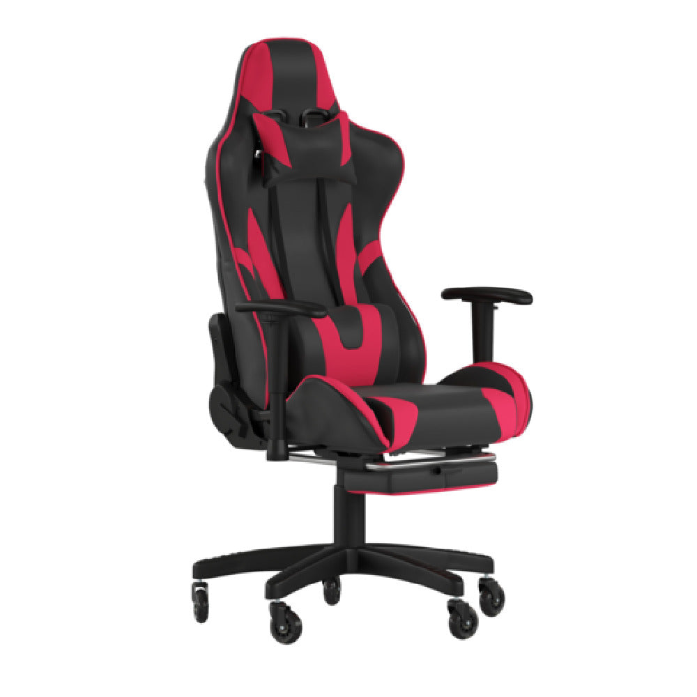 The Flash Furniture CH-187230-RED-RLB-GG X30 Gaming Chair is expertly designed for durability and comfort with a 280 lb weight capacity making it suitable for various users. This gaming chair features LeatherSoft upholstery for a premium feel and increased longevity. The high-back design provides superior support for extended gaming sessions. To enhance comfort, the chair includes removable headrest and lumbar pillows that can be tailored to individual preferences. The height adjustable arms and pneumatic seat height adjustment cater to different ergonomic needs, ensuring optimal posture. It incorporates a slide-out footrest for added relaxation, while the tilt lock mechanism and tilt tension adjustment knob allow users to customize their seating angle. The chair is built on a sturdy nylon base with end caps, fitted with roller style wheels for smooth movement across surfaces. Finished in a striking black and red color scheme, the chair requires assembly upon purchase. This versatile chair is ideally suited for gamers, office workers, and anyone seeking a comfortable seating solution that marries functionality with style. Its robust construction and adjustable features make it a valuable asset in both home and professional environments.