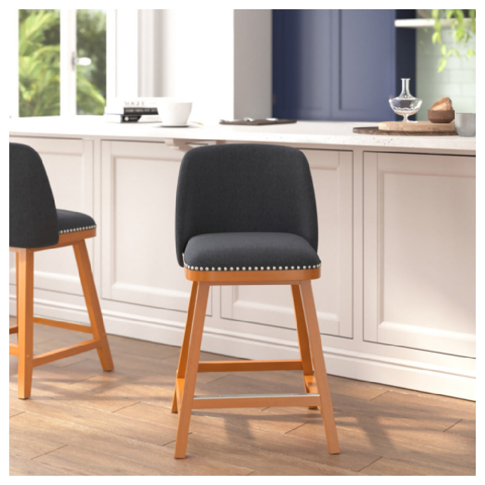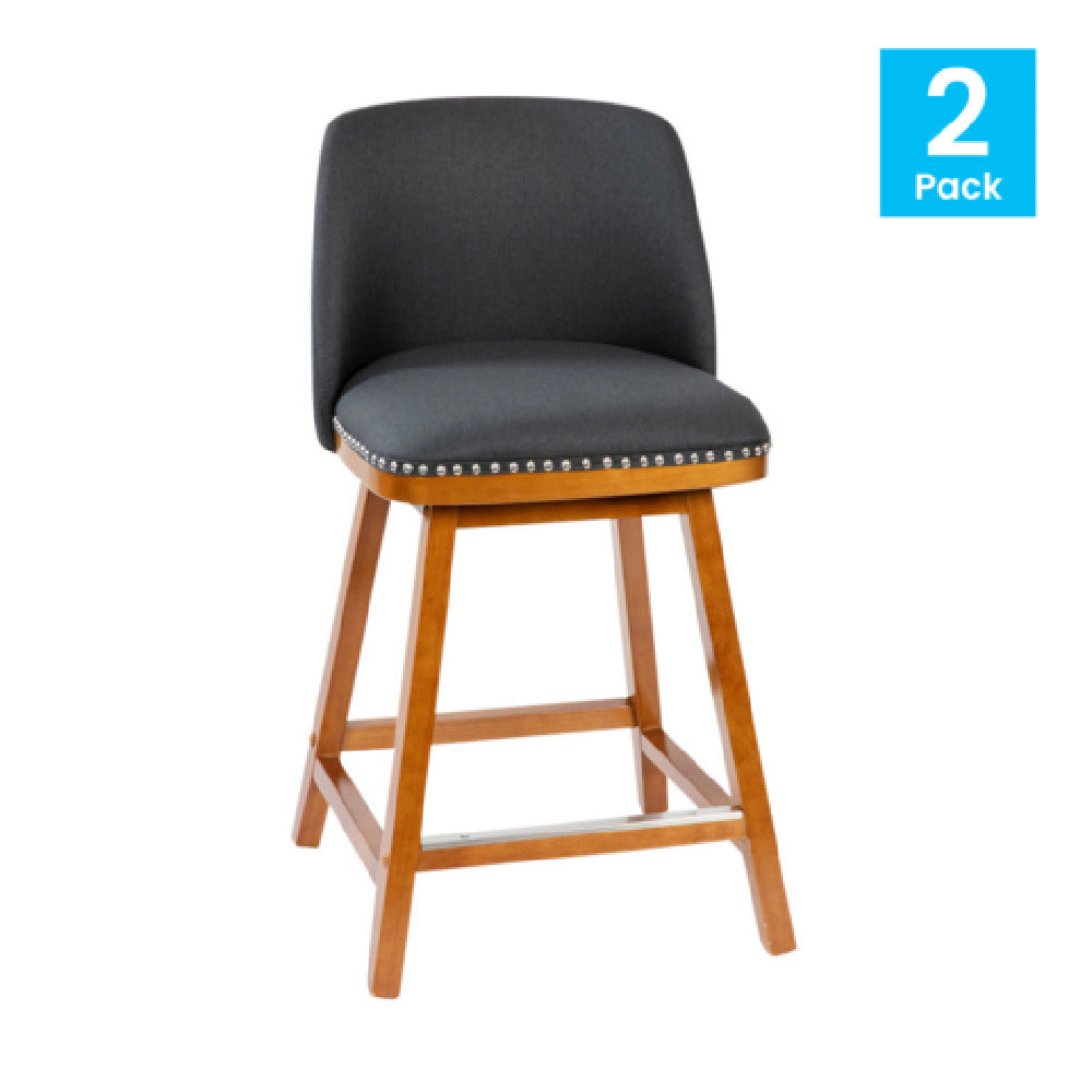 The Flash Furniture CH-192162X000-24-CHAR-GG Julia Counter Stool stands out with its robust 300 lb. weight capacity, catering to a wide range of users. The stool features a comfortable 24" seat height, making it an ideal choice for kitchen counters, bars, or high tables. Its mid-back, armless design offers a sleek and modern aesthetic, while the faux linen upholstery adds a touch of elegance. Accentuated with nail trim, the stool's design is both stylish and functional. The foam-padded back and seat ensure added comfort, providing support for extended seating durations. Constructed with a walnut finish wooden frame, it not only guarantees durability but also complements various interior decors. The built-in footrest enhances user comfort, allowing for relaxed seating. Available in a sophisticated charcoal color, the stool comes in a set of two, making it an excellent choice for both residential and commercial settings. Assembly is required, ensuring that the product can be conveniently packaged and shipped. The Flash Furniture Julia Counter Stool is designed for those who appreciate a blend of style, comfort, and functionality, making it a valuable addition to any modern space where both aesthetics and durability are prioritized.