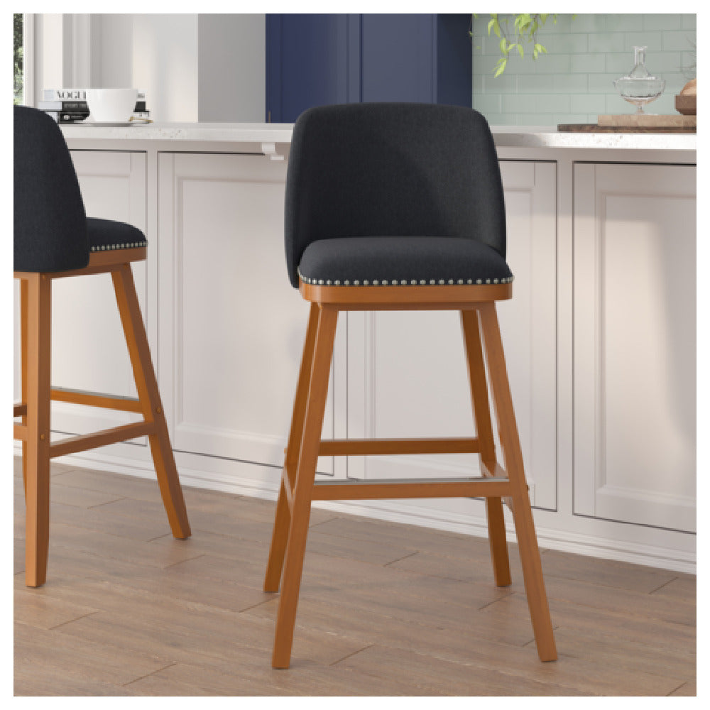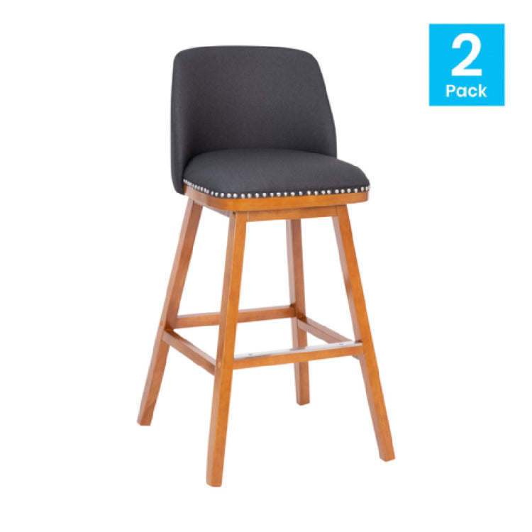 The Flash Furniture CH-192162X000-30-CHAR-GG Julia Bar Stool is a meticulously designed seating option that perfectly balances style and functionality, making it ideal for various commercial and residential settings. With a generous 300 lb weight capacity, this bar stool ensures durability and stability for a wide range of users. The stool features a 30-inch seat height, catering to standard bar and counter heights, and a mid-back, armless design that provides comfort without compromising space. The faux linen upholstery in charcoal, accentuated by a stylish nail trim, adds a touch of elegance and sophistication. Additionally, the foam-padded back and seat enhance user comfort for extended seating periods. Supported by a walnut finish wooden frame, this bar stool exudes a warm and inviting appearance. A built-in footrest further enhances user comfort, making it suitable for environments such as bars, restaurants, and kitchens. The set of two stools requires assembly, allowing for easy transport and setup. The Flash Furniture Julia Bar Stool is an excellent choice for those seeking a blend of modern aesthetics and reliable performance.