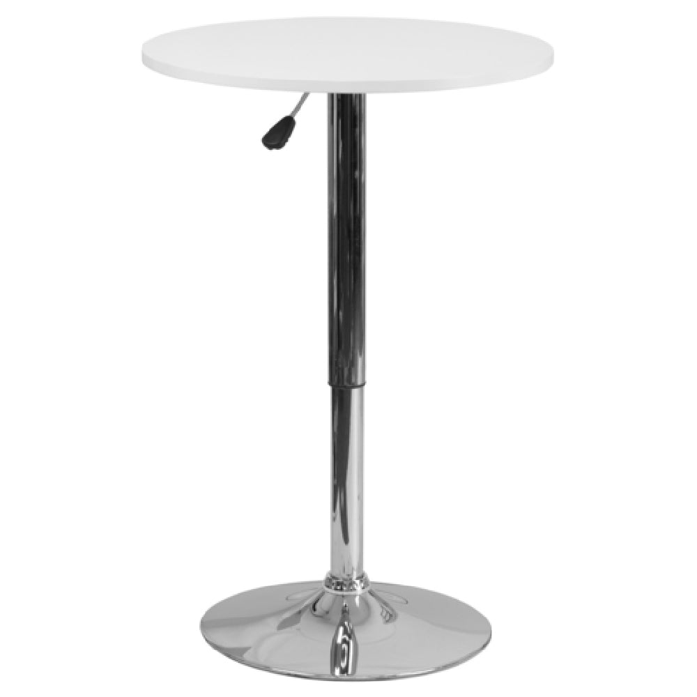 The Flash Furniture CH-2-GG Table is a versatile piece, essential for both commercial and residential environments. With a diameter of 23-3/4 inches, this round table boasts a 3/4-inch thick white wood swivel top, allowing for a modern yet practical design. Its standout feature is the adjustable height, ranging from 26-1/4 inches to 35-3/4 inches, facilitated by a convenient pneumatic adjustment lever located beneath the tabletop. This adaptability ensures comfort and functionality for a variety of uses and settings. Stability is ensured by its 17-1/2 inch diameter chrome base, which is equipped with a protective plastic ring, safeguarding floors from potential scratches and damage. This table is designed for durability and style, making it suitable for multiple settings, from casual coffee shops to contemporary home settings. With the necessity of assembly, purchasers can expect a straightforward setup process, and the in-stock items are typically shipped within 24 hours, ensuring quick delivery. The Flash Furniture CH-2-GG Table combines functionality, style, and convenience, making it an excellent choice for those seeking a reliable and aesthetically pleasing table solution.