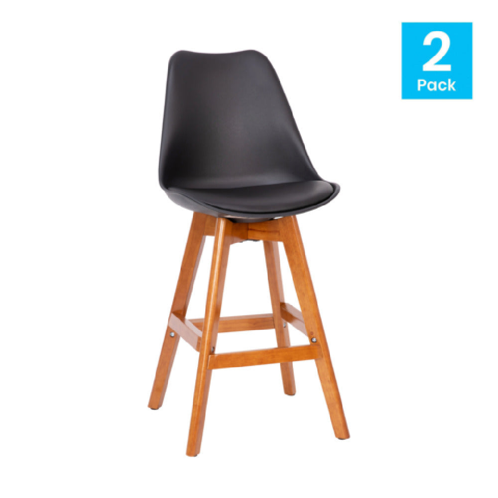 The Flash Furniture CH-210925-7-BK-GG Dana Counter Stool is a versatile seating solution, designed to seamlessly integrate into various settings with its blend of style and functionality. Boasting a robust 300 lb. weight capacity, this stool is crafted for durability and reliability. The 27-inch seat height is ideal for counter seating, providing comfortable access to elevated surfaces. Its high-back, armless design promotes a clean, modern aesthetic, while the LeatherSoft upholstery and foam padded back and seat ensure a plush sitting experience. The walnut finish wooden frame, complete with integrated footrests, offers both stability and a touch of elegance. Additionally, protective felt floor pads safeguard your floors from scratches, making it suitable for both residential and commercial environments. Available in a sleek black finish, this stool comes as a set of two and requires assembly. The Flash Furniture Dana Counter Stool is particularly well-suited for hospitality, dining, and home bar settings, providing a stylish and practical seating option that caters to diverse market segments within the furniture industry.