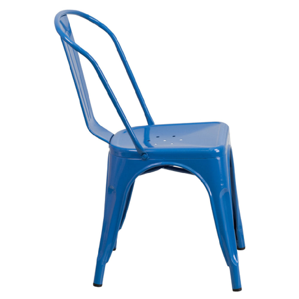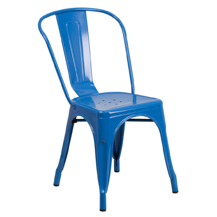 Flash Furniture CH-31230-BL-GG Stacking Side Chair is a highly durable seating solution designed to accommodate a significant weight capacity of up to 500 lbs, making it suitable for diverse environments and users. This stackable chair features a curved back with a vertical slat design, providing ergonomic support and aesthetic appeal. It is constructed from galvanized steel, ensuring long-lasting durability and resistance to various weather conditions. The chair's seat is equipped with drain holes, facilitating easy water runoff, making it an excellent choice for both indoor and outdoor use. The cross brace under the seat adds extra stability and strength, while the powder coat finish enhances its visual appeal and protects against rust. Lightweight yet robust, this chair can be stacked up to 8 chairs high, optimizing storage space when not in use. Additionally, plastic floor glides are integrated to protect floor surfaces from scratches and scuffs. Available in a vibrant blue color, the chair is designed for both commercial and residential settings, offering versatility and style. With most in-stock items shipping within 24 hours, the Flash Furniture CH-31230-BL-GG Stacking Side Chair is an efficient and practical choice for those seeking reliable and flexible seating options.