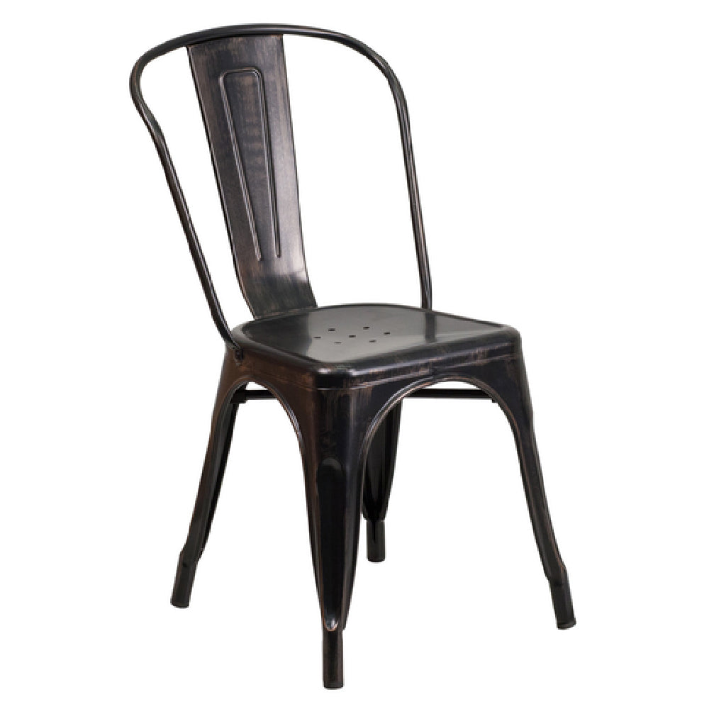 The Flash Furniture CH-31230-BQ-GG Stacking Side Chair stands out in the furniture industry with its impressive 500 lb. weight capacity, making it suitable for a variety of settings such as indoor and outdoor commercial and residential environments. Crafted from galvanized steel, this chair is both durable and lightweight, featuring a powder coat finish that enhances its resistance to the elements. The chair's design incorporates a curved back with a vertical slat, providing support and style, while the seat includes drain holes for added practicality in outdoor settings. A cross brace under the seat adds to the chair's stability, ensuring it can withstand significant use. This stackable chair can be efficiently stored up to 8 chairs high, optimizing space in busy environments like cafes and event venues. Additionally, the chair is equipped with plastic floor glides to protect flooring surfaces. Available in a stylish black and antique gold color combination, the Flash Furniture CH-31230-BQ-GG is a versatile seating solution that typically ships within 24 hours of ordering, offering both aesthetic appeal and functional benefits to various market segments looking for reliable and attractive seating options.
