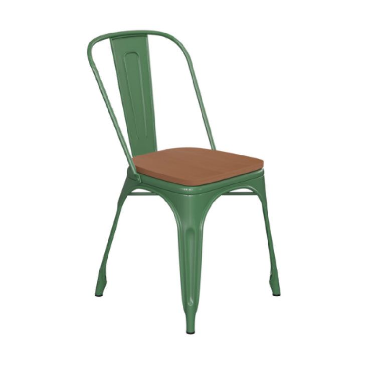 The Flash Furniture CH-31230-GN-PL1T-GG Perry Stacking Side Chair is a versatile seating solution, engineered to meet diverse needs in both residential and commercial settings. With a remarkable weight capacity of 500 lb, this chair is designed to accommodate a wide range of users, ensuring durability and strength. Its stackable design allows up to 8 chairs to be efficiently stored, optimizing space in bustling environments like cafes, event spaces, and dining areas. The chair boasts a curved back with a vertical slat for ergonomic support, while the teak poly resin wood seat offers a stylish and weather-resistant finish. Constructed with galvanized steel, it ensures longevity and resilience against the elements, making it suitable for both indoor and outdoor use. This model includes a cross brace under the seat for added stability and plastic floor glides to protect surfaces from scratches. Finished in a vibrant green, the chair not only provides functional benefits but also adds a pop of color to any setting. The Flash Furniture Perry Stacking Side Chair is an excellent choice for those seeking a blend of style, practicality, and robust performance in various seating applications.