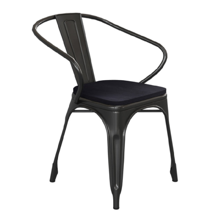 Flash Furniture CH-31270-BK-PL1B-GG Luna Armchair is a robust seating solution, boasting a substantial weight capacity of 500 pounds. This armchair features a distinctive curved back with a vertical slat design, providing both comfort and style. Crafted with a poly resin wood seat, it ensures durability and weather resistance, making it suitable for both indoor and outdoor use. The galvanized steel construction adds to its longevity and resilience, especially in commercial settings. A cross brace under the seat enhances its structural integrity, allowing it to withstand frequent use. Ideal for various market segments, from bustling cafes to tranquil residential patios, this armchair is versatile in its applications. Its ability to stack up to 8 armchairs high offers space-saving benefits, particularly advantageous for venues with ever-changing seating needs. Available in a sleek black finish, the Luna Armchair seamlessly blends with diverse decor styles, underscoring its adaptability in different environments. Whether for commercial or residential use, this chair provides a unique blend of functionality and aesthetic appeal, meeting the demands of multiple industries.