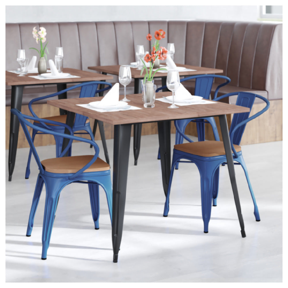 The Flash Furniture CH-31270-BL-PL1T-GG Luna Armchair is a versatile seating solution designed to meet the demanding needs of both commercial and residential spaces. With an impressive 500 lb. weight capacity, this armchair features a curved back with a vertical slat design, providing both aesthetic appeal and ergonomic support. The seat is crafted from durable teak poly resin wood, offering the look of natural wood with enhanced weather resistance. A cross brace under the seat adds stability and strength, ensuring the chair can withstand frequent use. Constructed from galvanized steel, the Luna Armchair is built to resist rust and corrosion, making it suitable for both indoor and outdoor environments. The chair's ability to stack up to 8 armchairs high allows for efficient storage and space-saving when not in use. This particular model is finished in a vibrant blue, adding a pop of color to any setting. Ideal for restaurants, cafes, patios, and home dining areas, the Flash Furniture Luna Armchair combines style, durability, and functionality, catering to various market segments seeking reliable and attractive seating solutions. Its blend of materials and design features make it a standout choice for enhancing the aesthetic and functional qualities of any space.